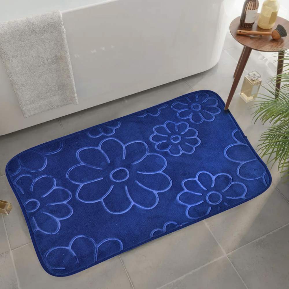 Представляем вам коврик для ванной размером 40х60 см, который станет идеальным дополнением вашего интерьера. Его глубокий синий цвет и рельефный цветочный узор не только привнесут уют, но и создадут атмосферу спокойствия в ванной комнате. Мягкая и ворсистая текстура коврика обеспечит комфорт при каждом шаге, а его практичность позволит легко поддерживать чистоту.