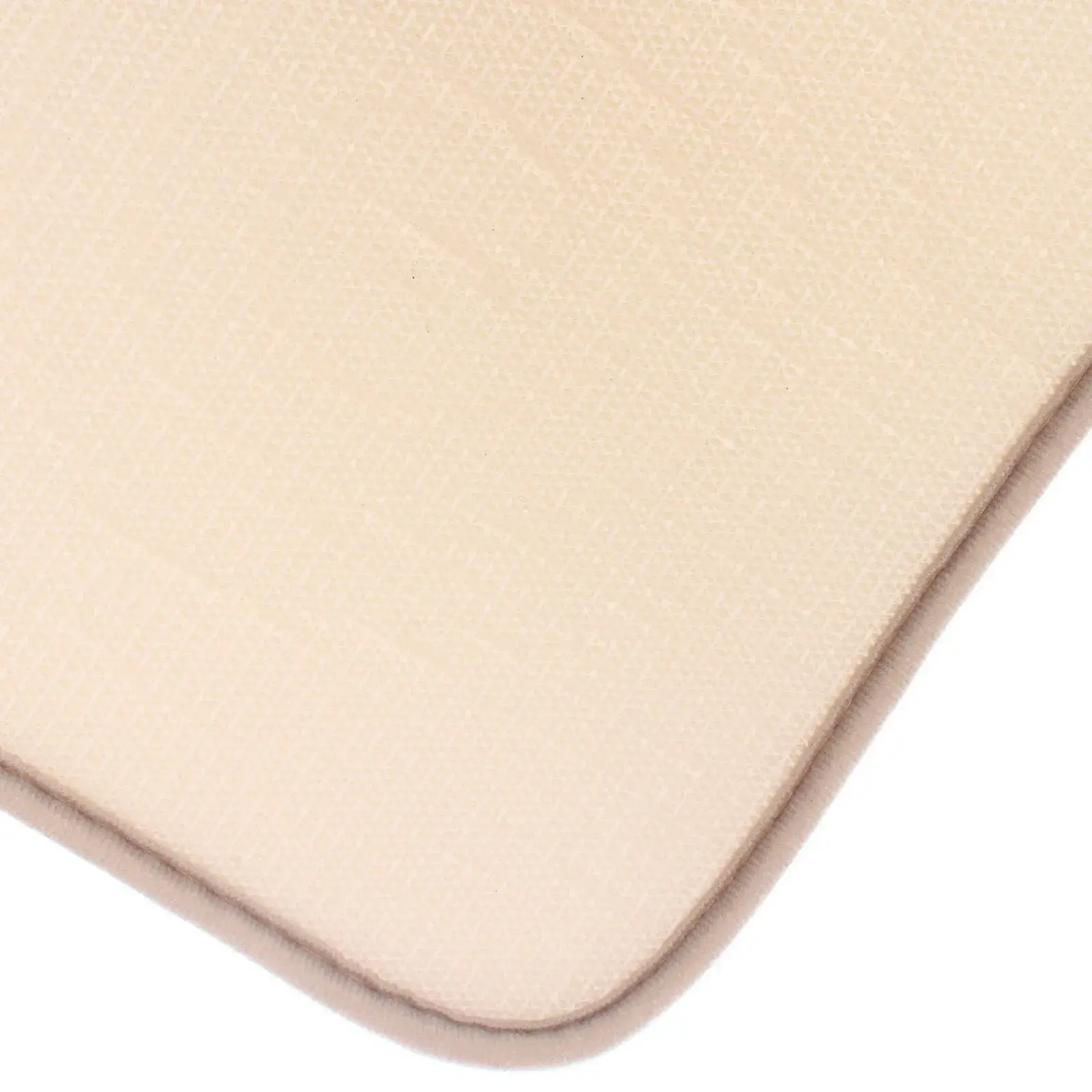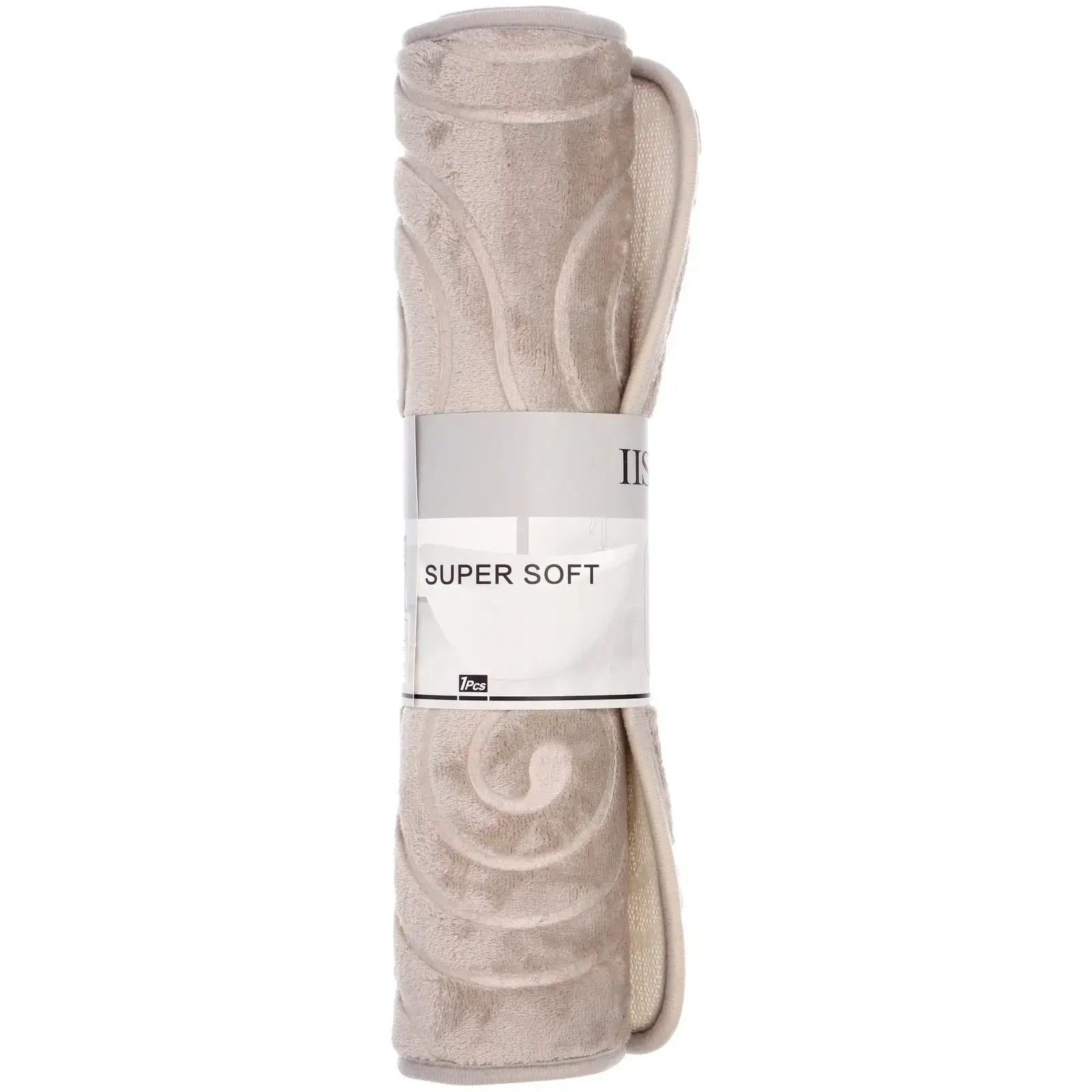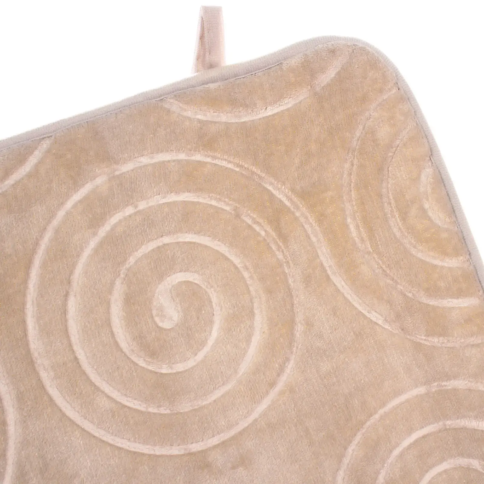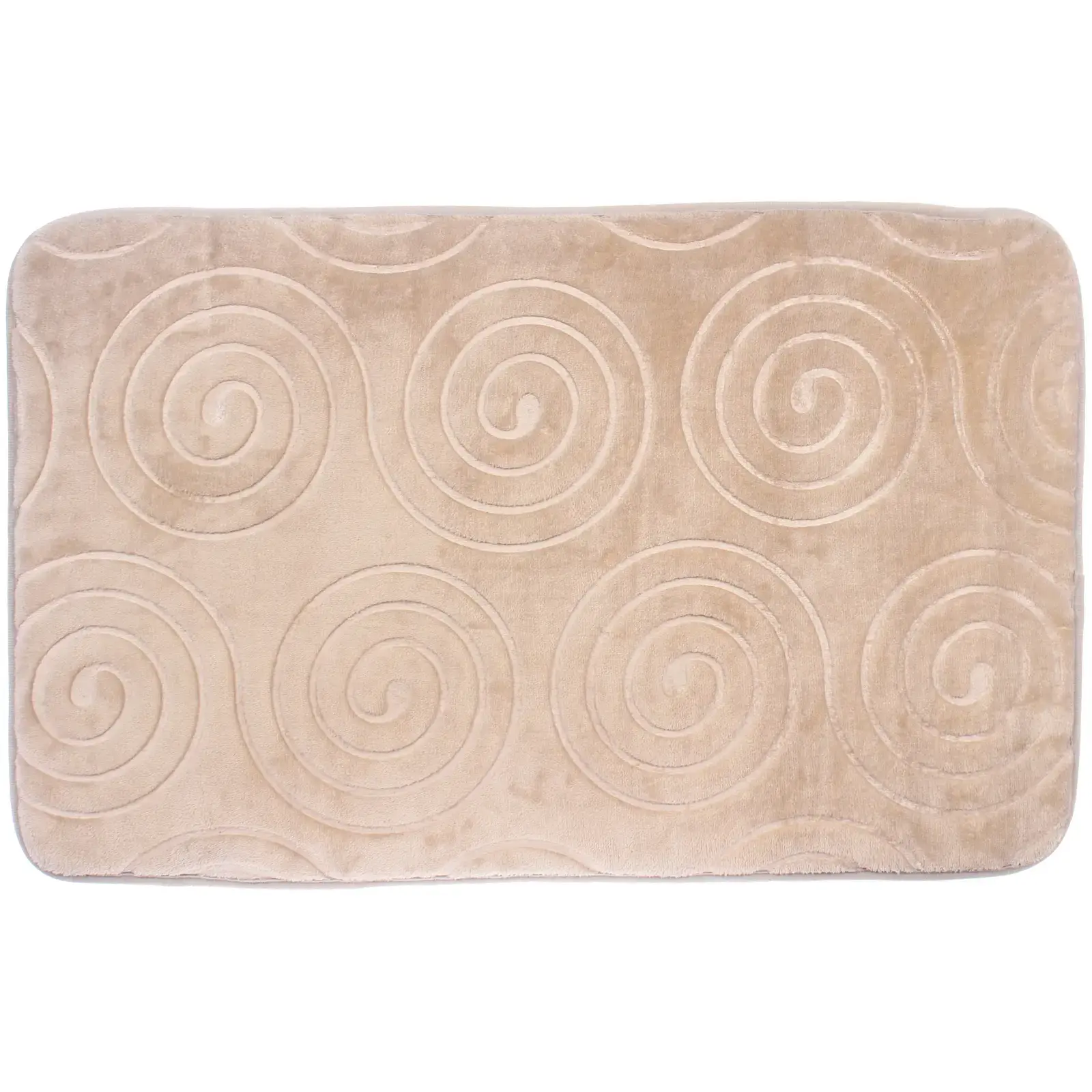 Светло-бежевый оттенок с геометрическим узором гармонично впишется в любой интерьер. Противоскользящие элементы на обратной стороне надежно фиксируют коврик даже на мокром кафеле. Для поддержания чистоты достаточно протереть поверхность влажной тряпкой или постирать в машинке при 30°C.