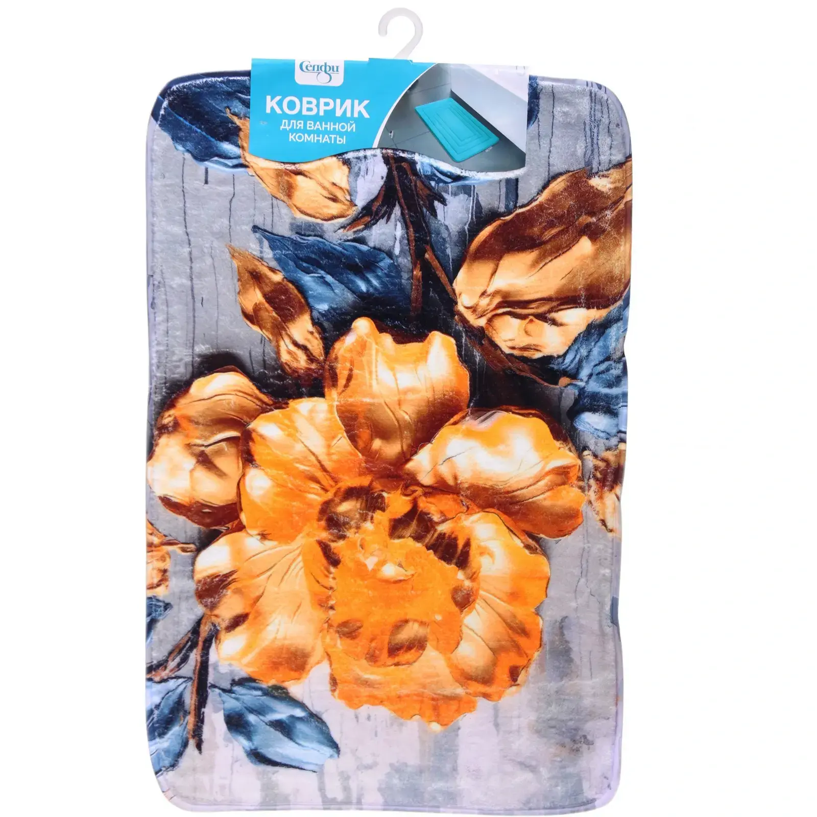 Коврик выполнен в желтых и голубых оттенках с цветочным дизайном, что добавляет яркости и свежести в интерьер. Он легко стирается при температуре до 40°C с использованием жидкого моющего средства. Не сушите на батарее и избегайте солнечных лучей, чтобы сохранить его первоначальный вид.