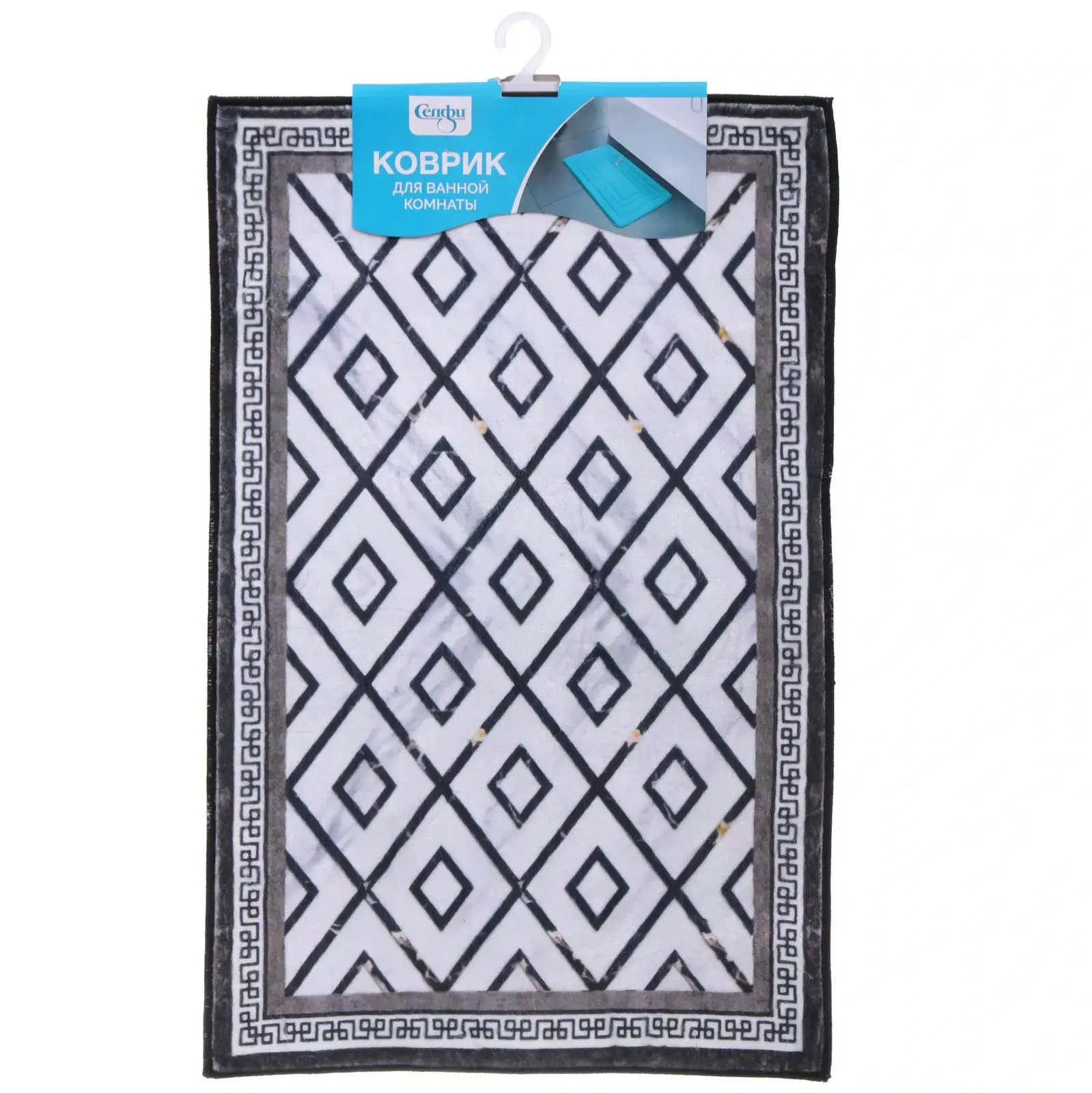 Представляем вам коврик для ванной размером 50х80 см, который станет идеальным дополнением вашего интерьера. Его мягкая текстура и приятный на ощупь ворс обеспечивают максимальный комфорт при использовании. Коврик выполнен в черно-белых тонах с геометрическим узором, что придаёт ему современный и стильный вид. Он не только украсит вашу ванную комнату, но и обеспечит безопасность благодаря противоскользящей основе.
