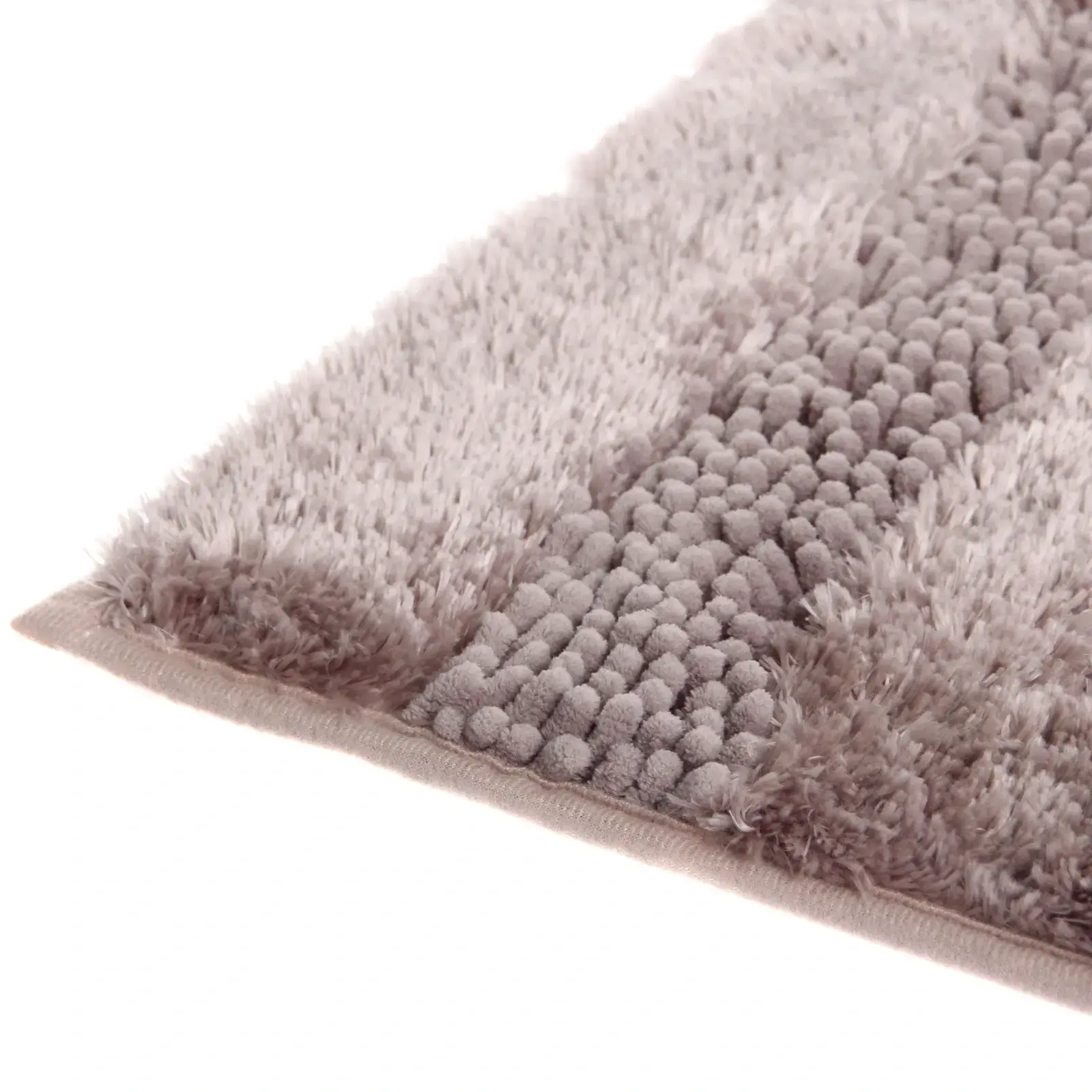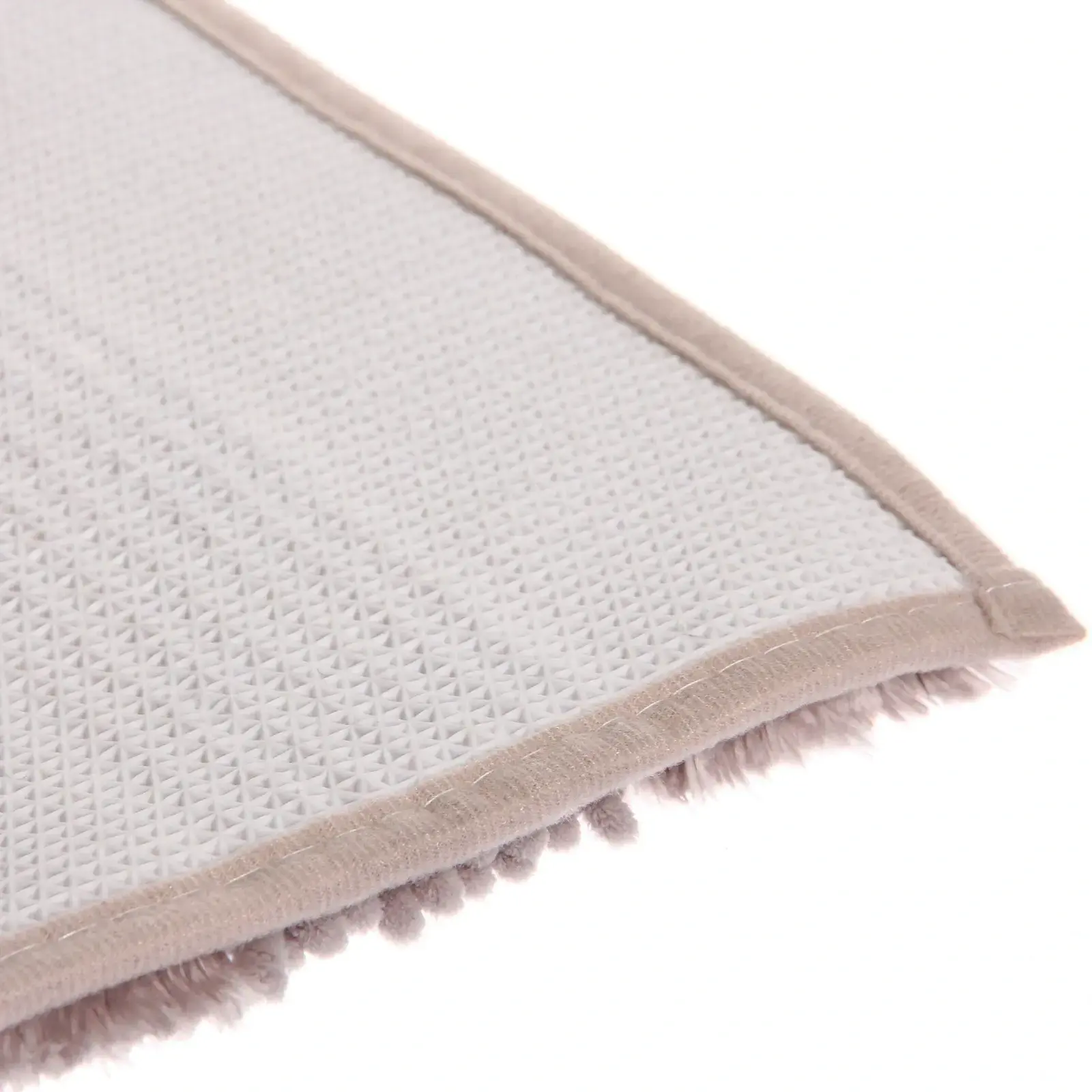 Коврик выполнен в бежевом цвете с текстурированным ворсом, что придаёт ему стильный вид. Обработка краев выполнена качественно, что гарантирует долговечность изделия. Избегайте сушки на батарее и прямых солнечных лучей для сохранения его первоначального вида.