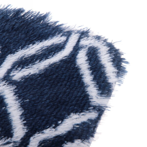 Этот мягкий коврик для ванной станет идеальным решением для создания уюта и безопасности в вашем доме. Благодаря стильному геометрическому рисунку в оттенках темно-синего и белого, он органично дополнит любой интерьер.