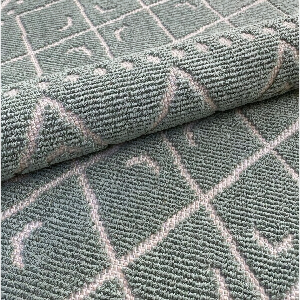 Выбирая коврик ZALEL, вы получаете не только красивый элемент декора, но и долговечный продукт, который легко стирать и поддерживать в чистоте. Хлопковый материал обеспечивает мягкость и комфорт, а светло-зеленый цвет с белыми узорами добавляет свежести и легкости в интерьер. Этот коврик станет отличным дополнением к любому стилю ванной комнаты.