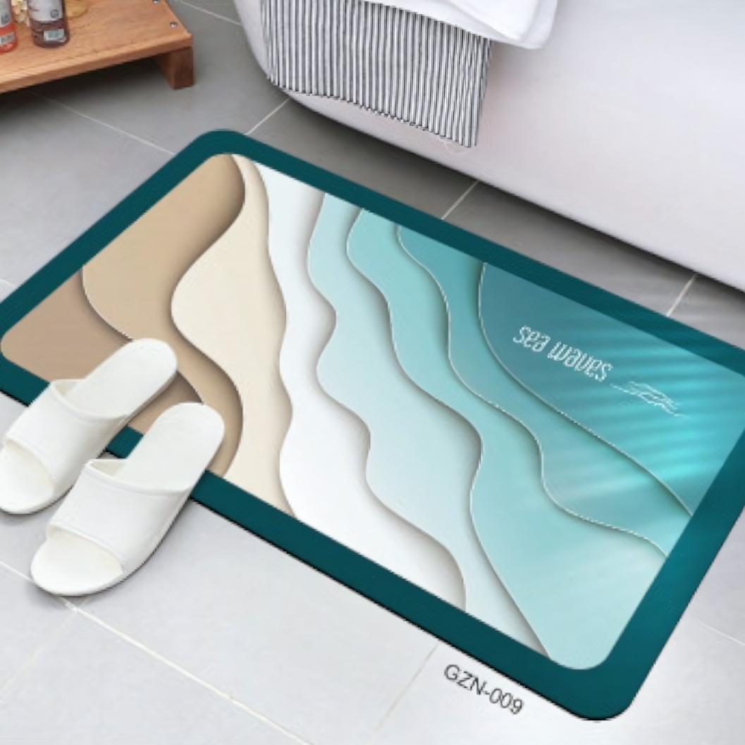 Этот коврик объединяет практичность и эстетику: мягкий абстрактный рисунок в морском стиле оживит интерьер ванной или спальни, а надёжное противоскользящее покрытие обеспечит безопасность при каждом шаге.