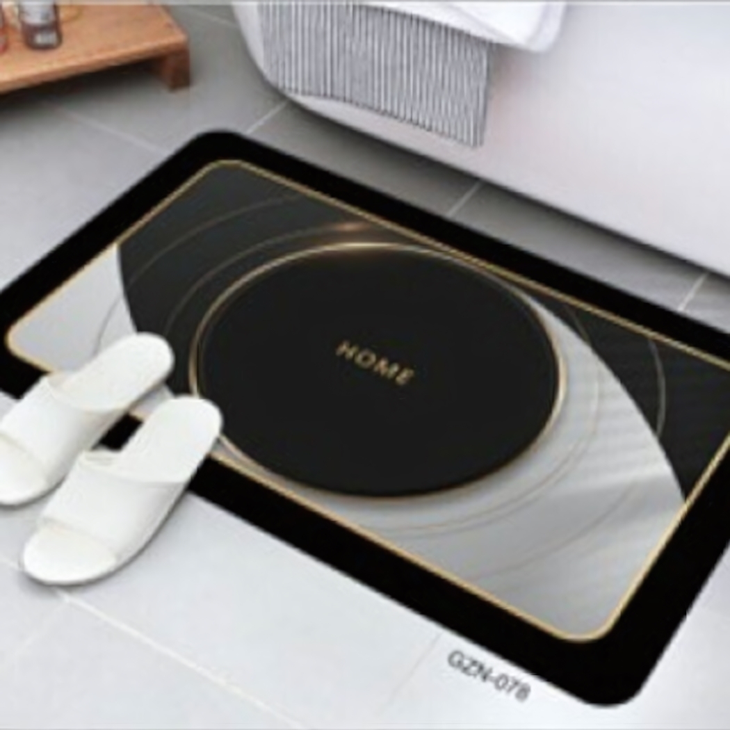 Коврик имеет размеры 45х75 см, что делает его универсальным для большинства ванных комнат. Он легко укладывается на пол и подходит для использования в любых помещениях, где требуется дополнительная защита от скольжения. Благодаря стильному дизайну с надписью 'HOME' в золотых буквах на черном фоне, коврик станет не только практичным, но и эстетически привлекательным элементом вашего интерьера.