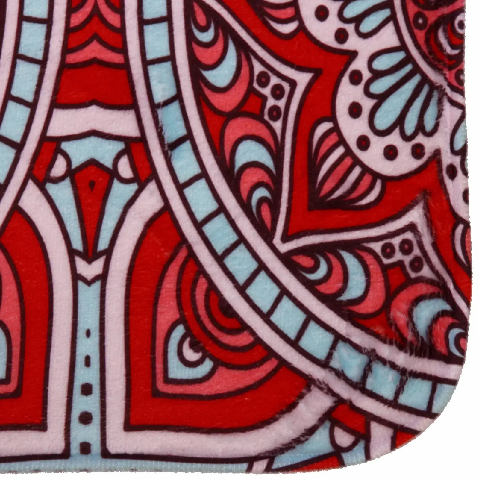 Коврик имеет прямоугольную форму и выполнен в красно-белых и синих тонах, что делает его универсальным для сочетания с различными цветами интерьера. Его текстильная структура обеспечивает мягкость и комфорт при использовании. Не упустите возможность добавить этот стильный и практичный элемент в ваш дом!