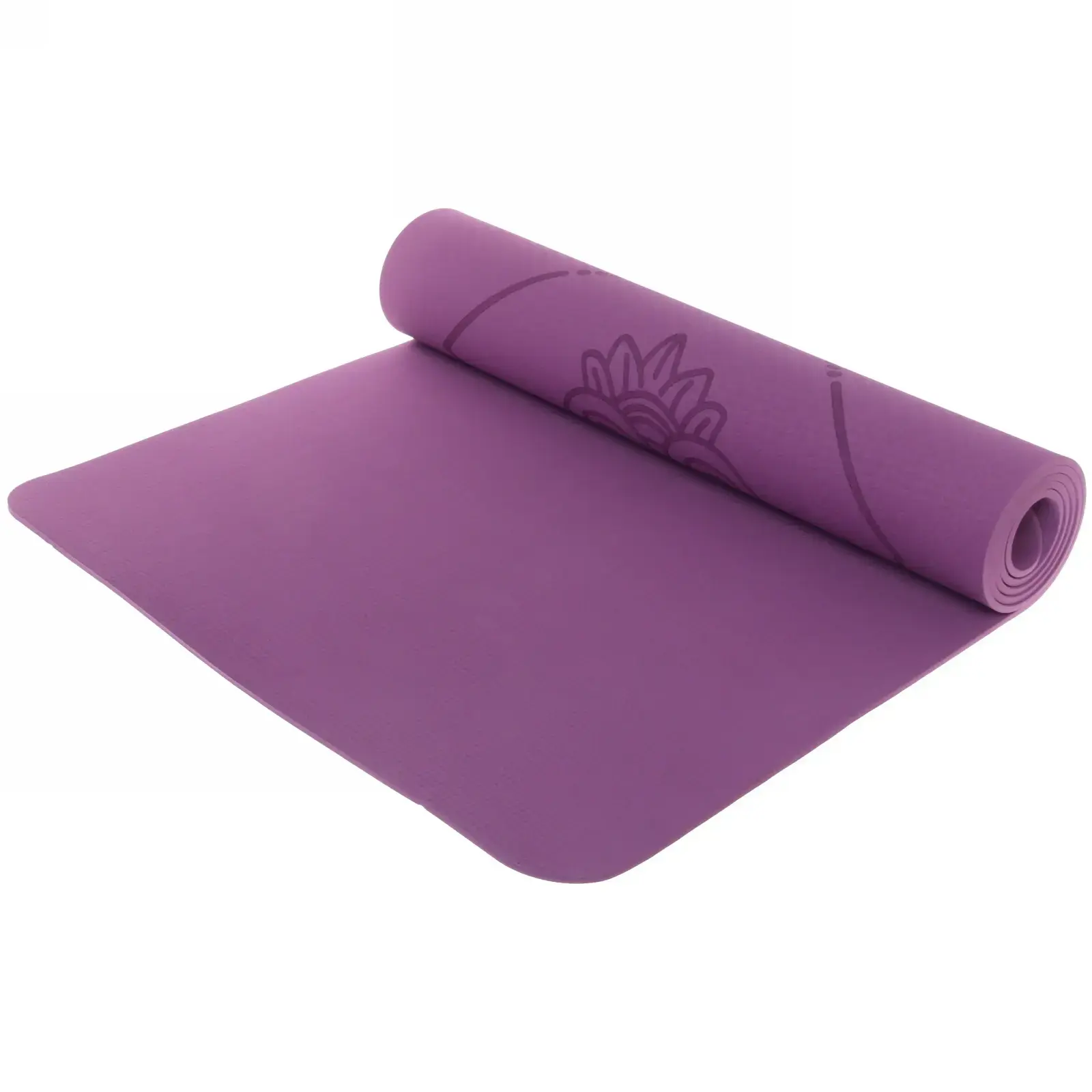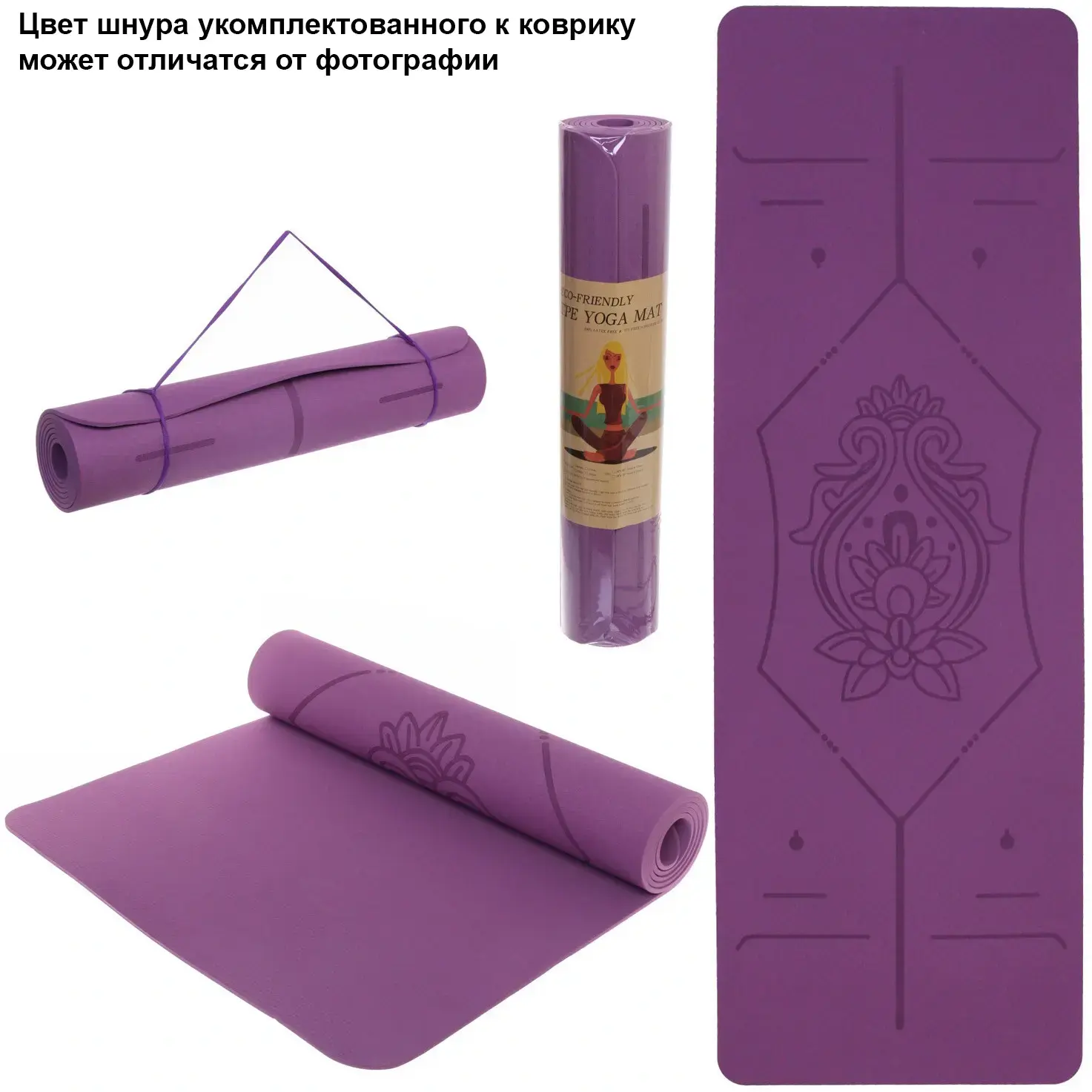 Коврик для йоги «Мандала» с рисунком лотоса, TPE, 183x61 см, толщина 6 мм, противоскользящий
