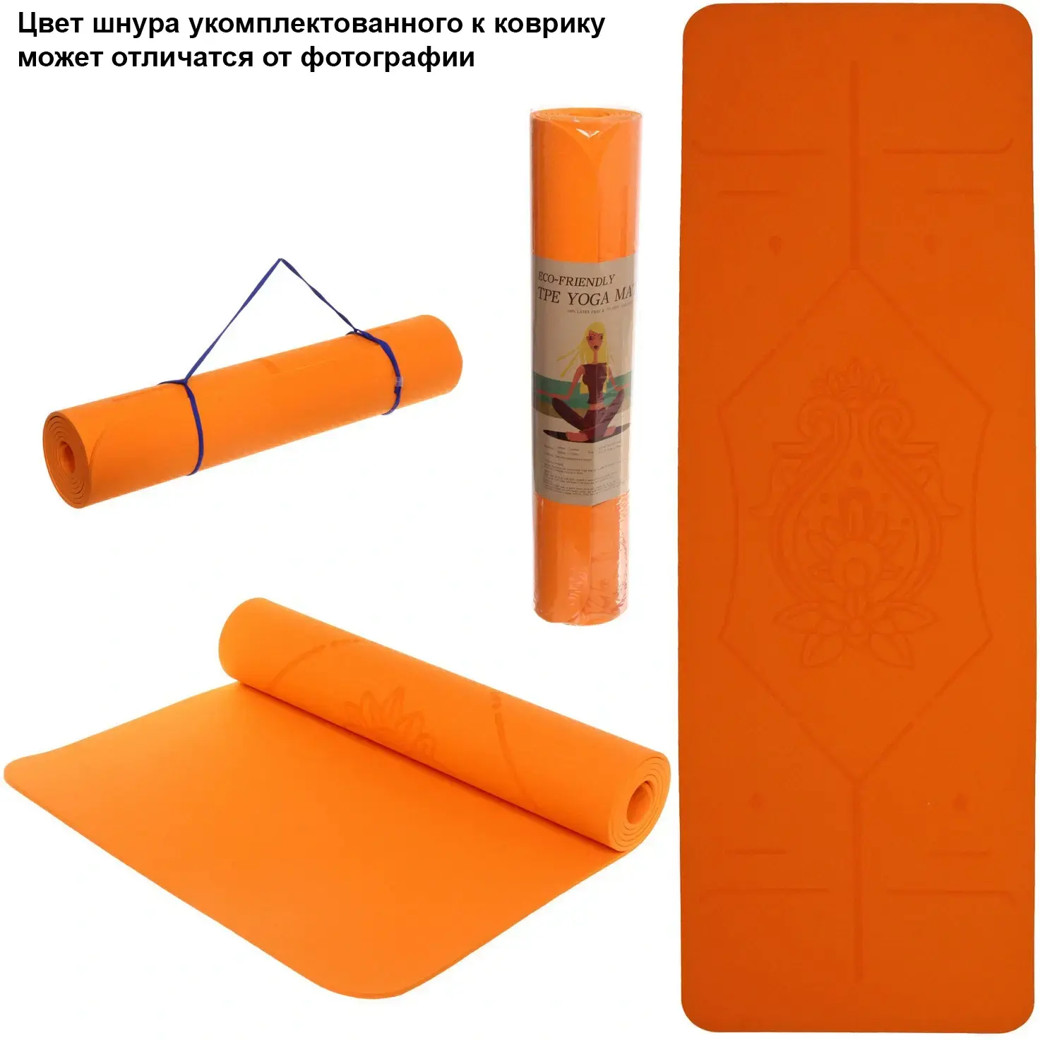 Коврик для йоги «Мандала», TPE, 183x61 см, оранжевый, амортизация, противоскользящий