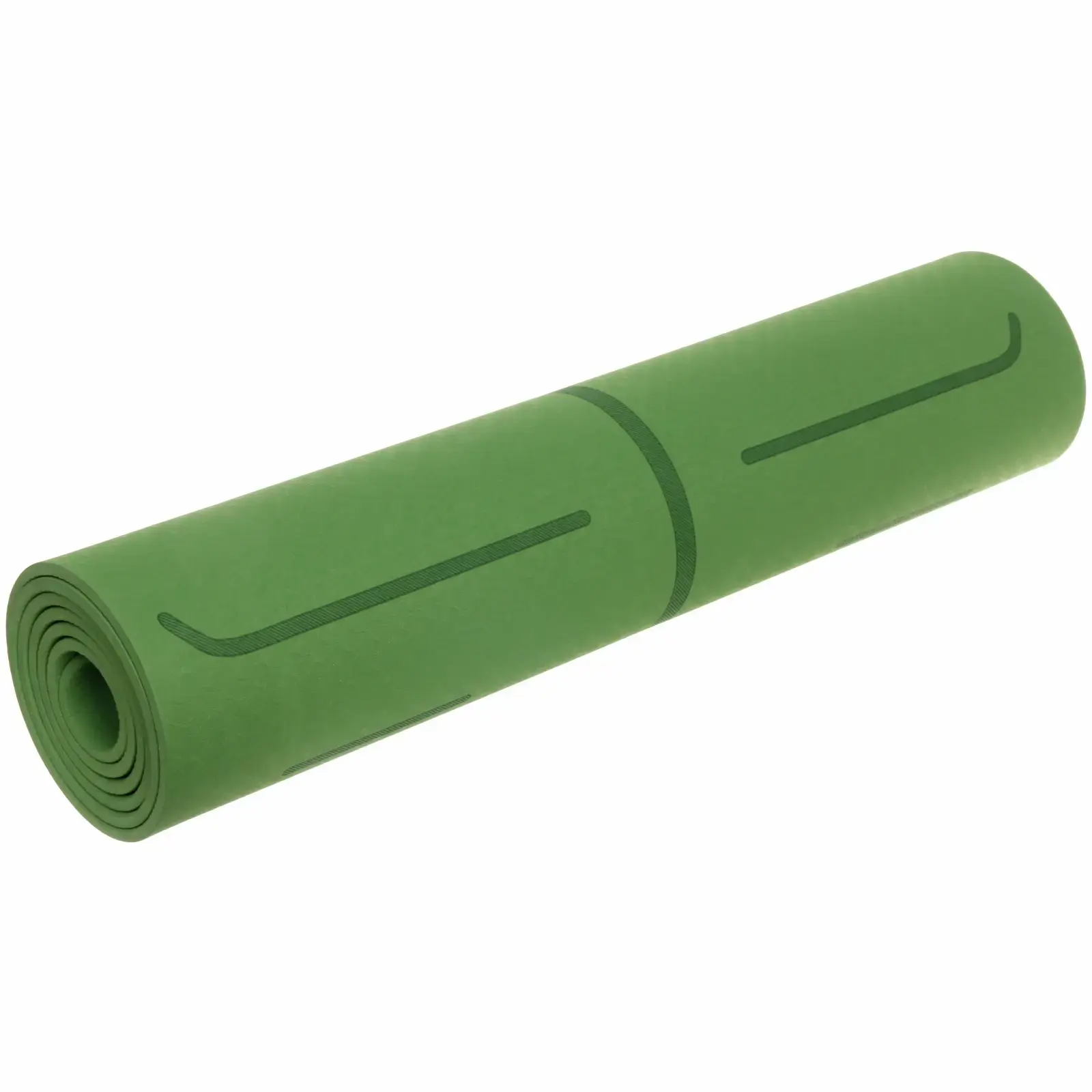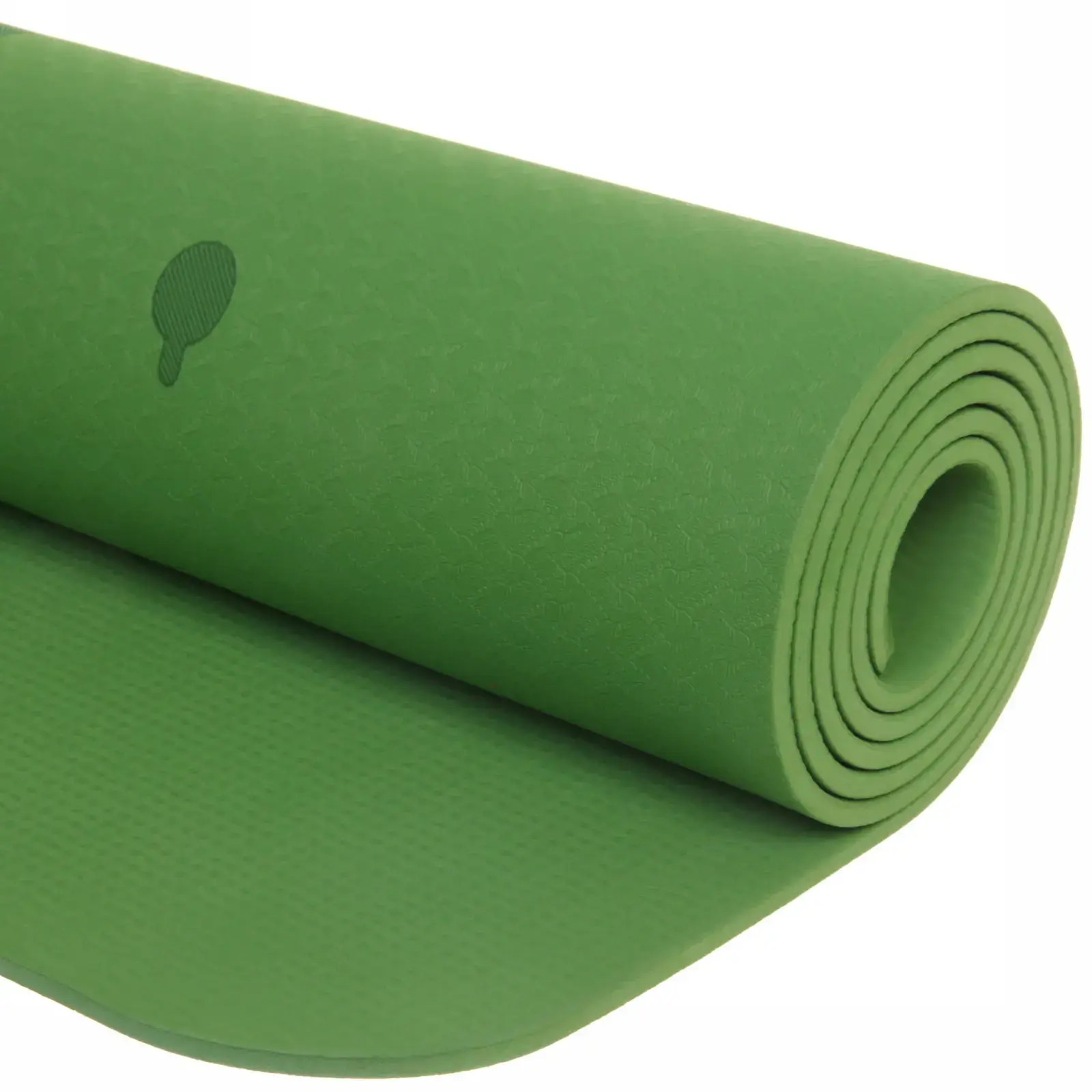 Размер 183x61 см подходит для людей любого роста. Закруглённые края предотвращают загибание, а специальная маркировка помогает правильно расположить тело во время асан. Благодаря эластичной ленте в комплекте, коврик легко переносить в рулоне.