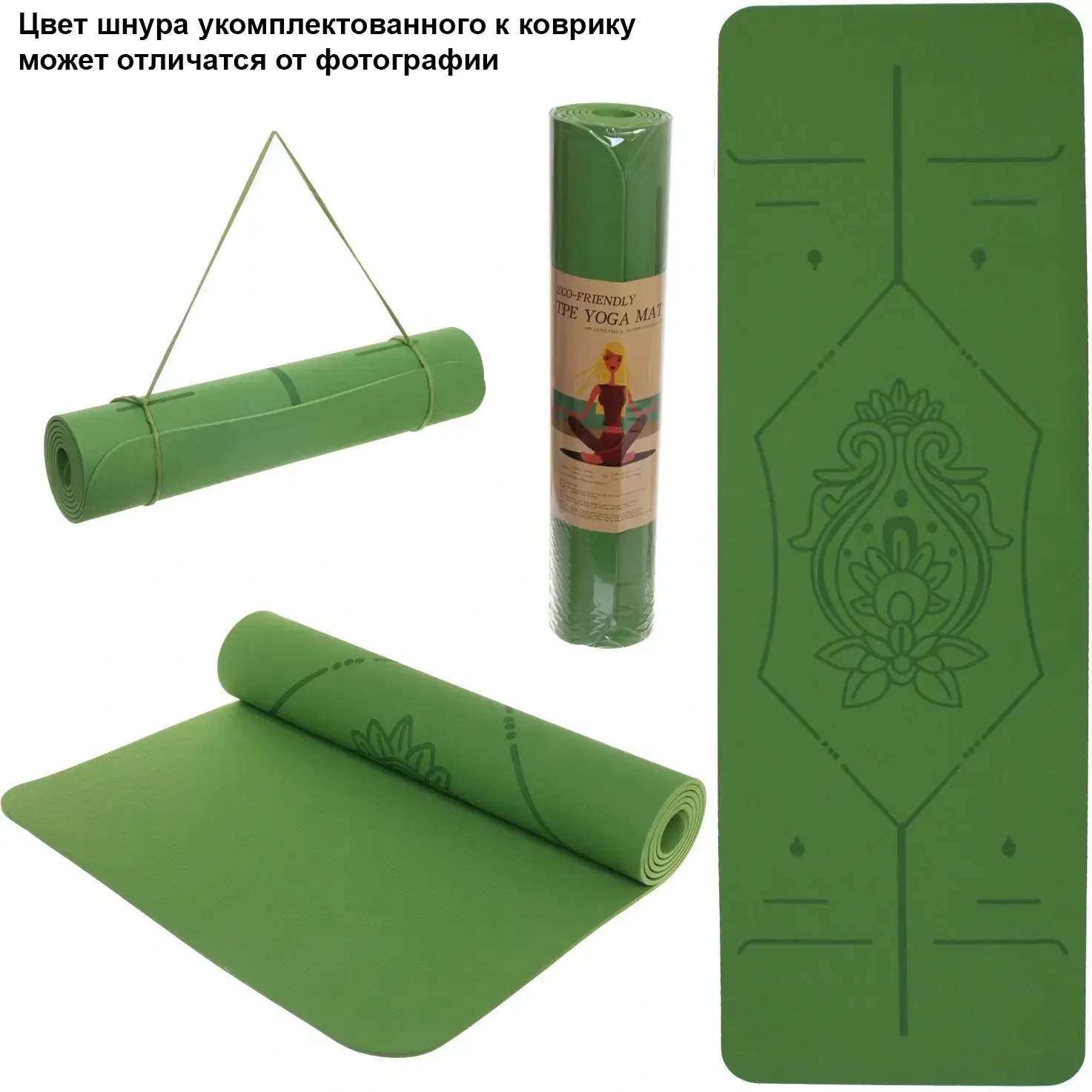 Коврик для йоги «Мандала» с антискользящим покрытием, TPE, 183x61x0.6 см, зеленый