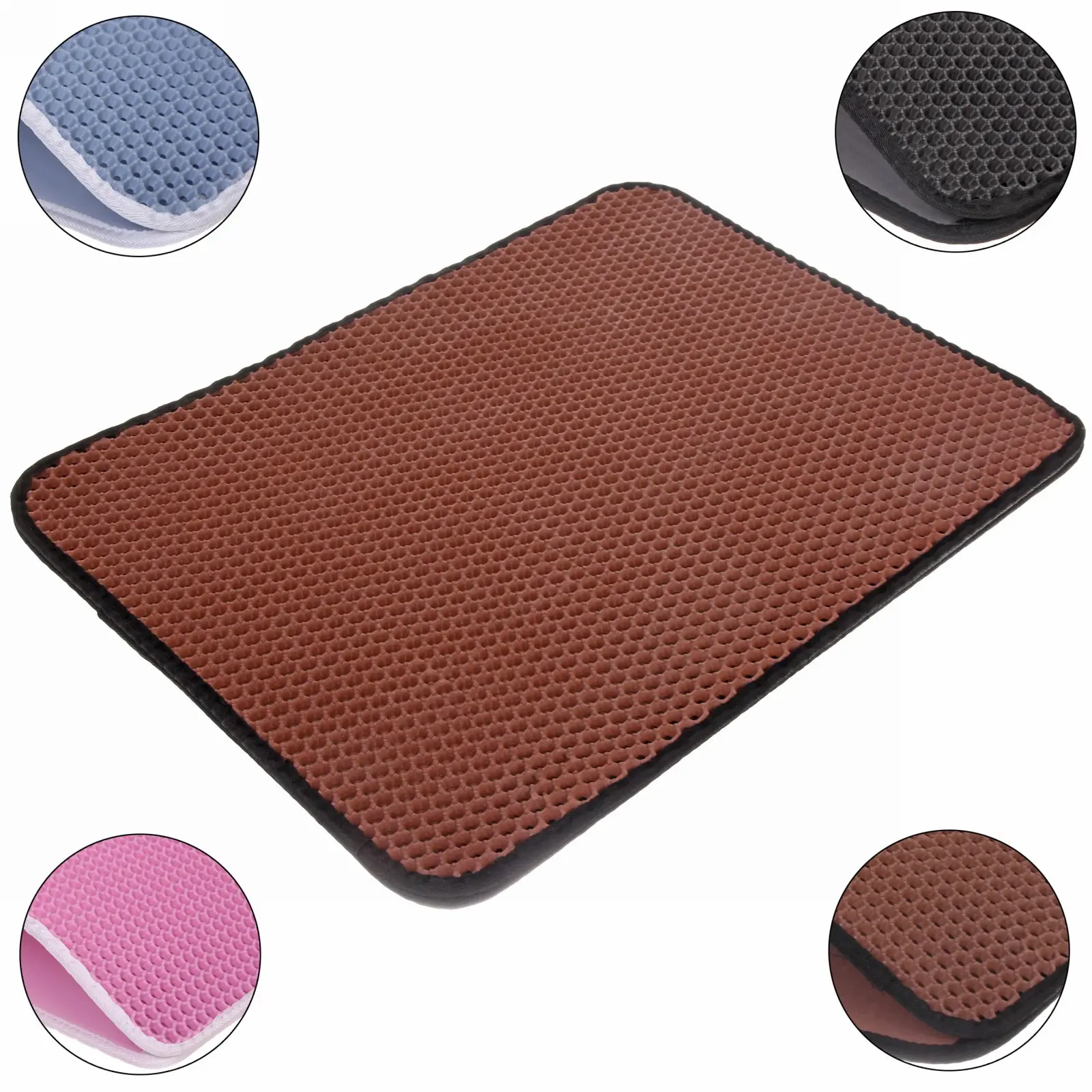 Коврик идеально подходит для использования рядом с туалетом для кошек и собак. Его двухслойная структура включает верхний слой с ячейками, которые улавливают наполнитель, и нижний водонепроницаемый слой, который предотвращает попадание влаги на пол. После того как ваш питомец использует туалет, вы можете легко пересыпать накопившийся наполнитель обратно в лоток, что делает процесс уборки быстрым и простым.
