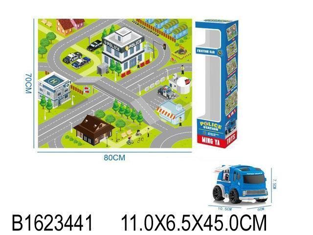 Развивающий коврик «Городские приключения» 80х70 см с машинкой, пружинный механизм