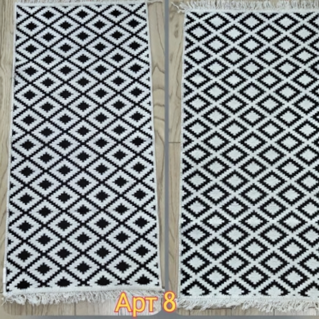 Коврик интерьерный 60х120 см, двухсторонний, с бахромой, черно-белый ромбовый узор
