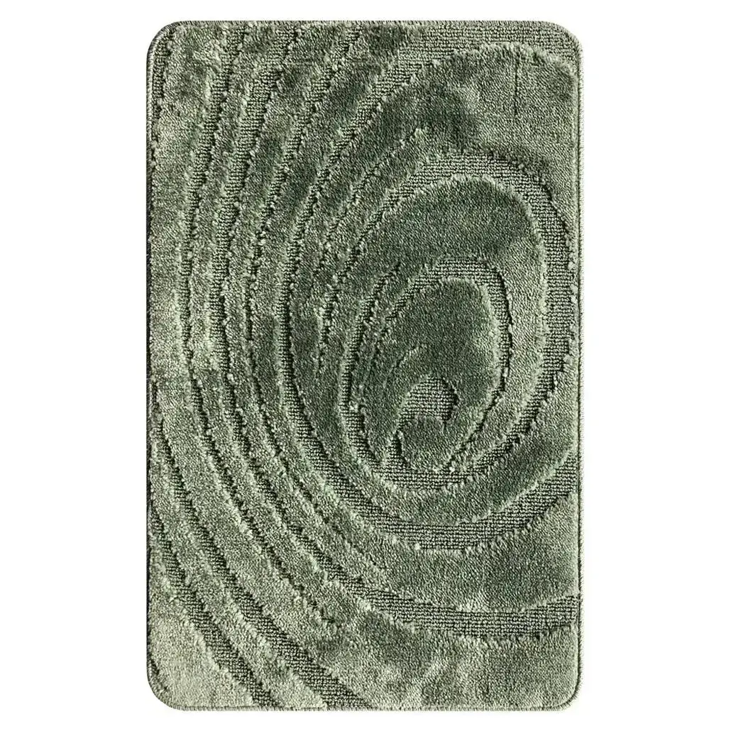 Материал коврика — полипропилен, основа — латекс. Закругленные углы и оригинальный рельефный рисунок концентрических линий создают лаконичный, но выразительный вид. Зеленый оттенок освежает интерьер и легко сочетается с разными стилями оформления. Легко очищается, быстро сохнет, сохраняет форму даже при частых стирках.
