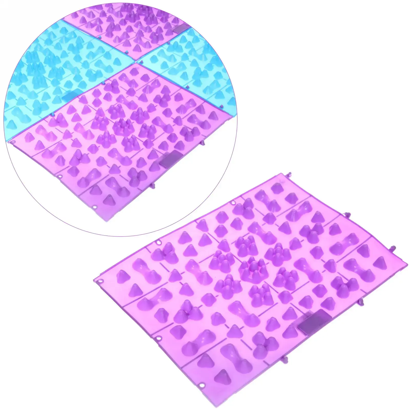 Коврик имеет яркий фиолетовый цвет и выполнен из прочного пластика, что делает его устойчивым к износу. Его можно легко мыть и хранить в любом месте. Не упустите возможность улучшить качество своей жизни с помощью массажного коврика «Лёгкость»!