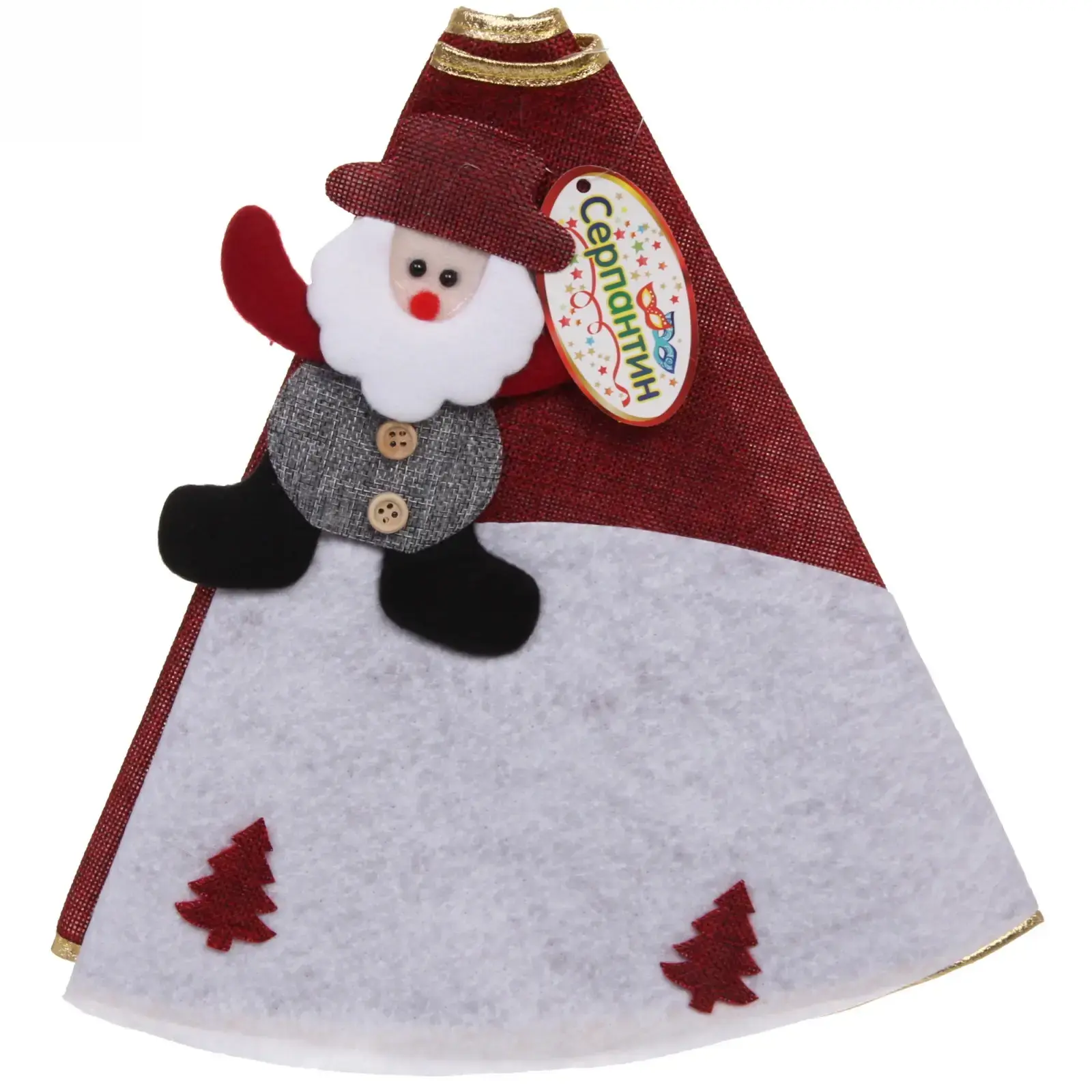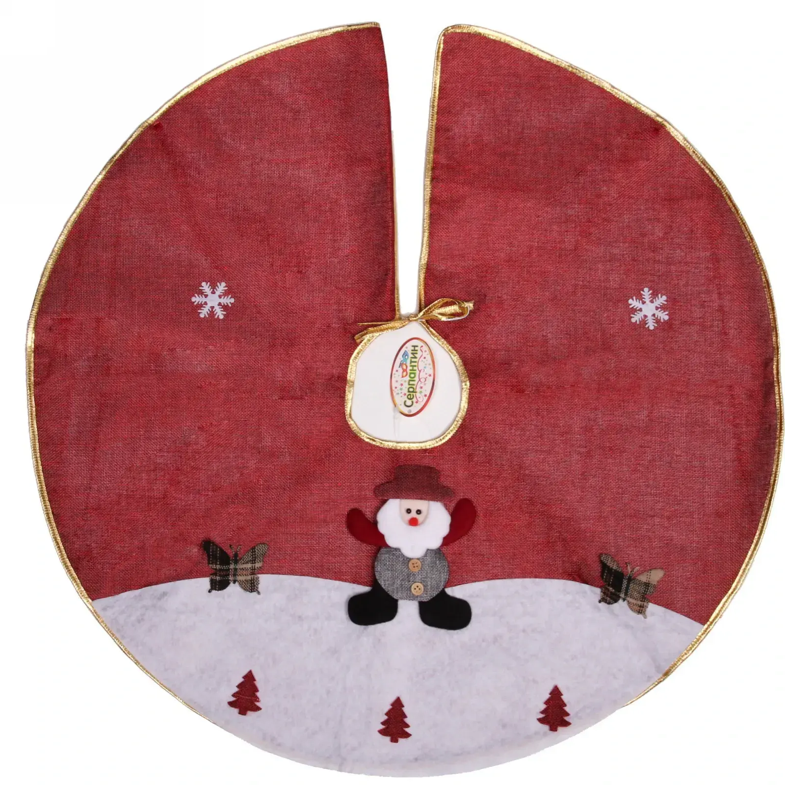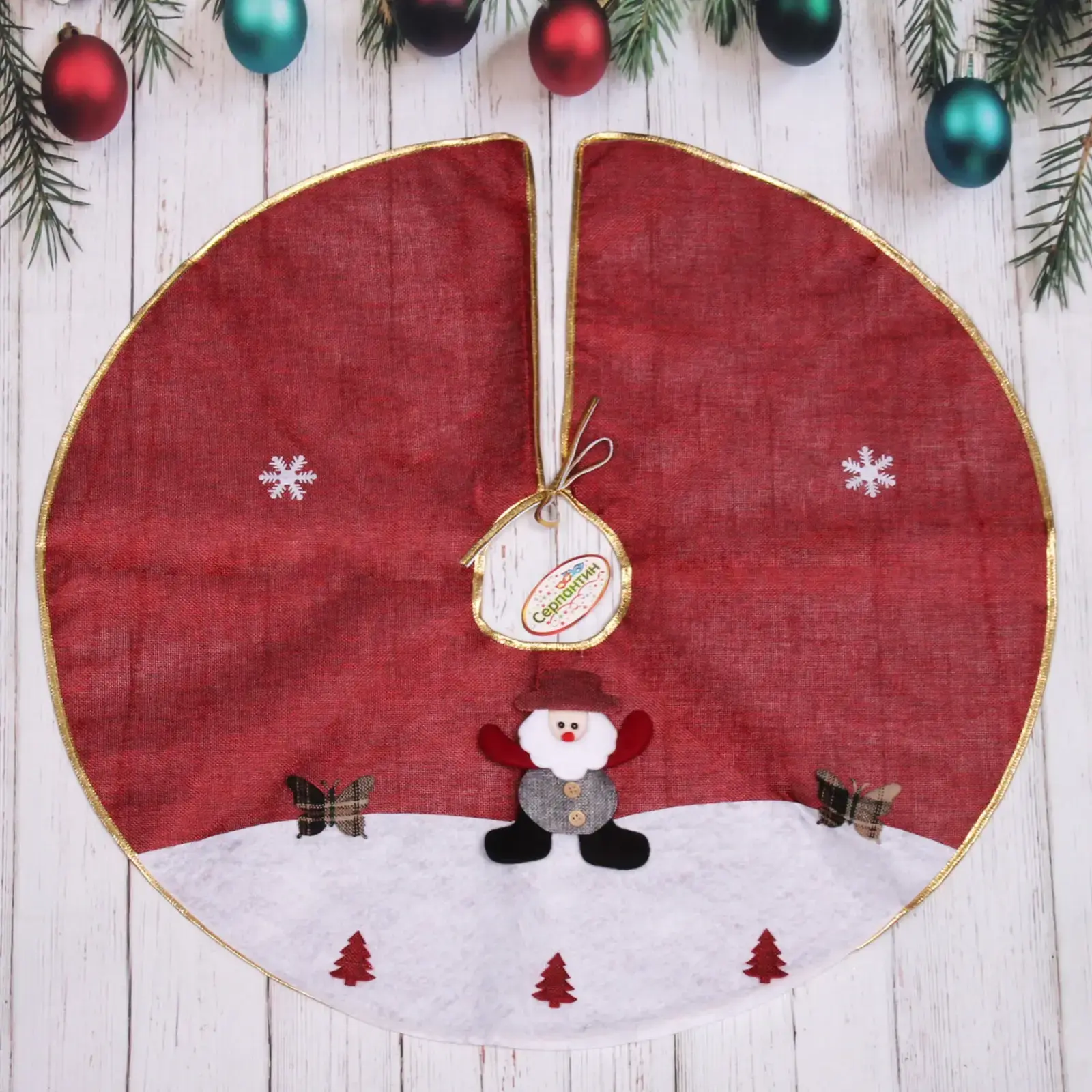 Коврик под ёлку 'Снежный лес' d-70 см, текстиль, красный с золотым кантом