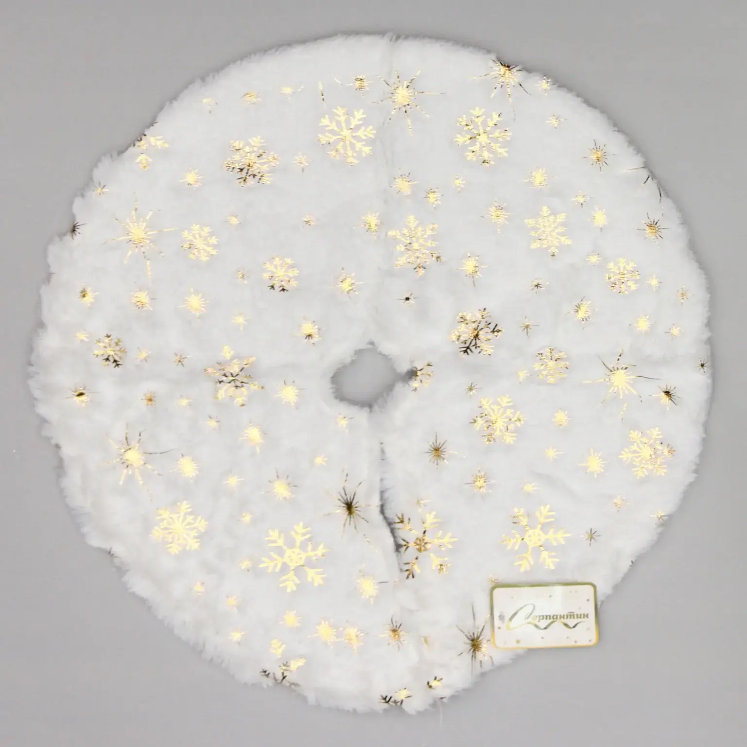 Коврик подходит для установки под новогоднюю ёлку, создавая стильный и завершённый вид вашего интерьера. Он идеально впишется в любой дизайн, будь то классический или современный. Благодаря центральному отверстию, коврик легко устанавливается и подходит для ёлок различного размера.