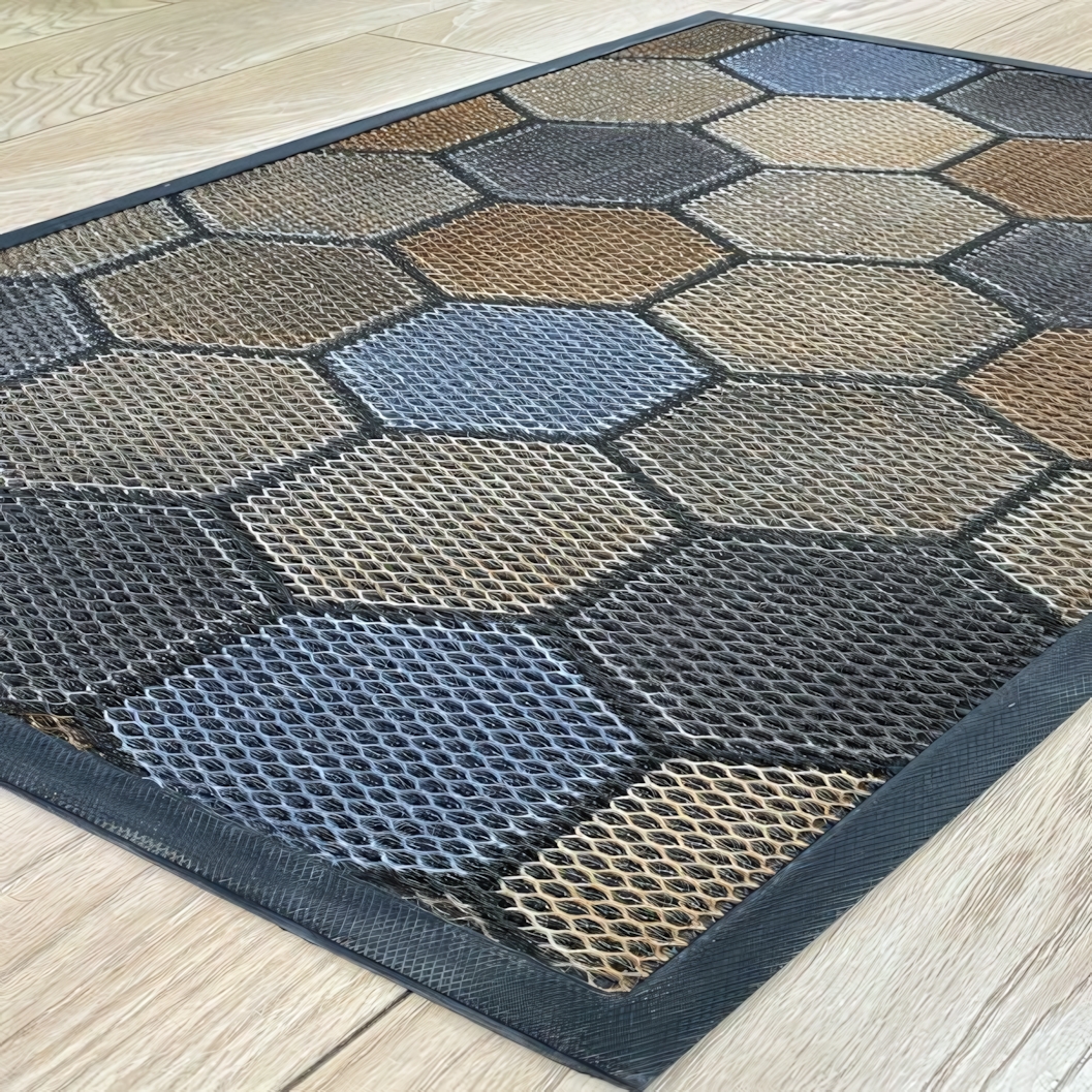 Рельефная поверхность с рисунком из шестиугольников способствует лучшему очищению подошвы обуви. Коврик удобно размещается перед входной дверью, в тамбуре или на балконе. Он подойдет для семей с детьми, владельцев домашних животных и всех, кто ценит порядок без лишних усилий.