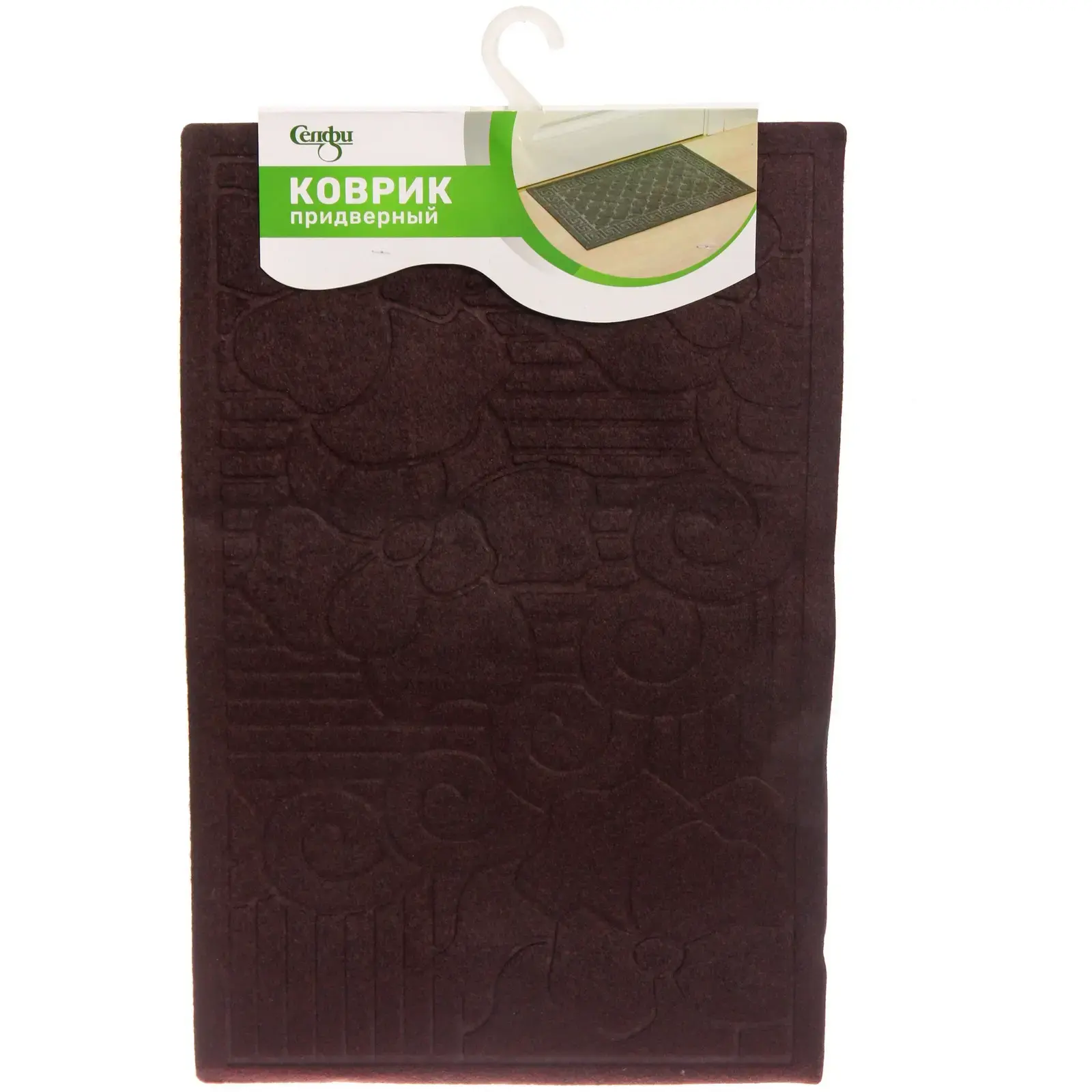Придверный коврик 'Селфи' станет первым элементом комфорта в вашем доме. Его стильный дизайн с цветочным узором и теплым коричневым оттенком гармонично впишется в любой интерьер прихожей.