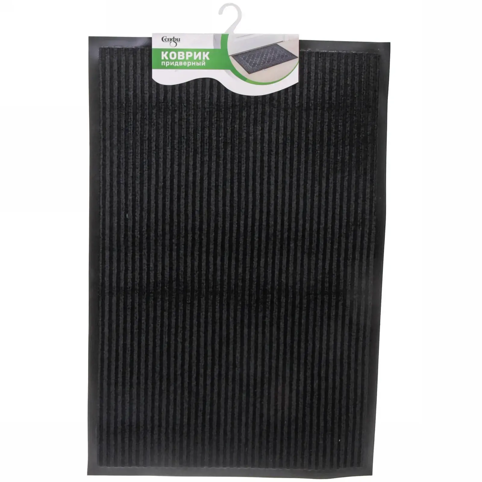 Коврик имеет размеры 58х88 см, что делает его идеальным для размещения у входной двери. Он подходит для использования как в жилых помещениях, так и в офисах. Благодаря своему универсальному черному цвету, коврик легко впишется в любой интерьер, добавляя ему стильный и современный вид.