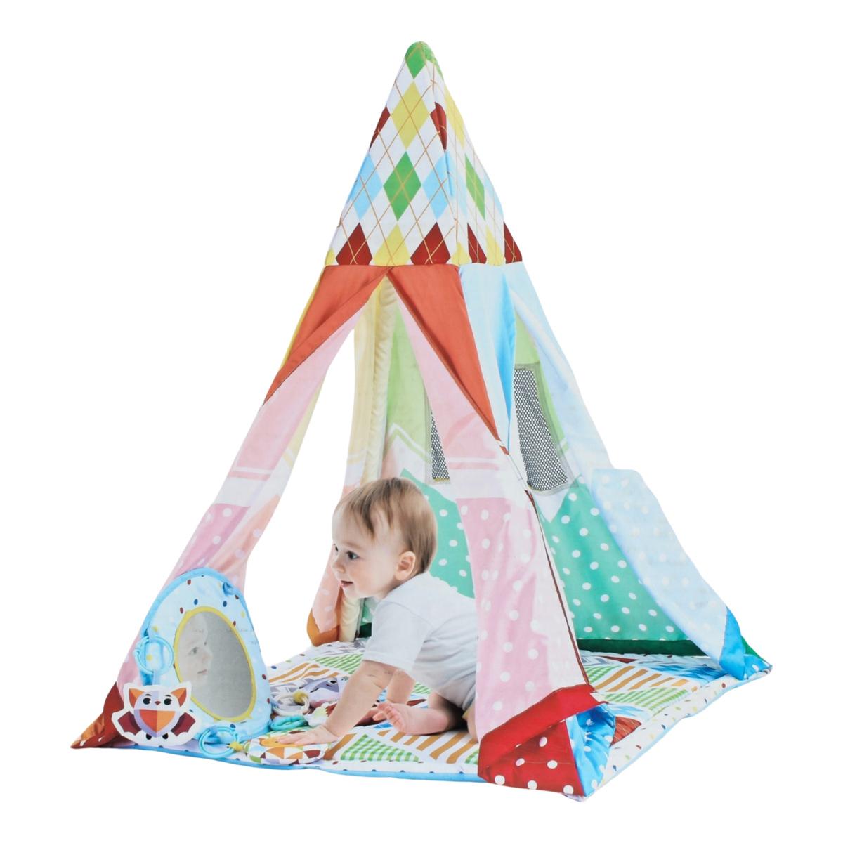 Коврик легко укладывается, можно использовать его для гимнастики, активных игр или просто для комфортного отдыха ребенка. В комплект входят мягкий матрасик, развивающие игрушки и зеркало, что помогает развивать у малыша интерес к окружающему миру, а вас – вносит удобство и спокойствие.