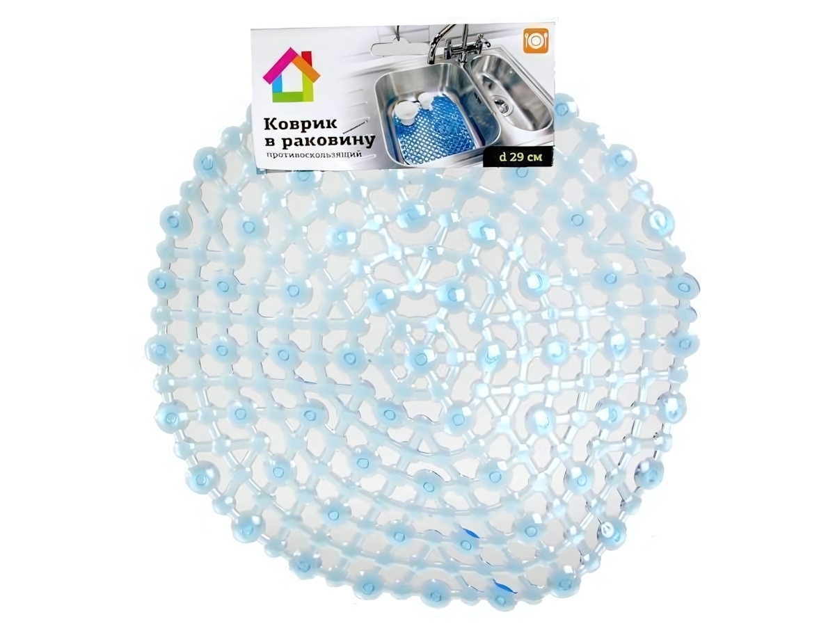 Коврик в раковину 'Паутинка' 29см, противоскользящий, прозрачный/голубой