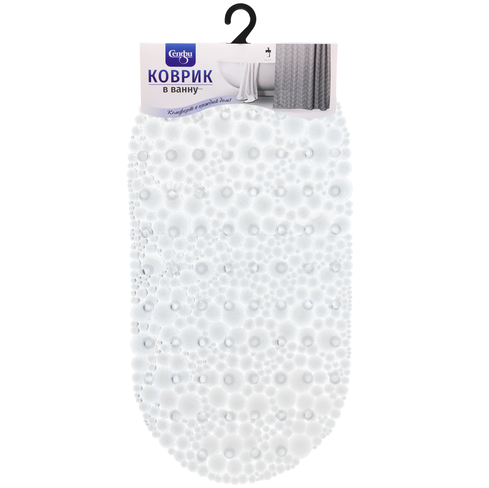Коврик в ванную противоскользящий, ПВХ, белый, 64х33 см, дренажные пузырьки, быстросохнущий