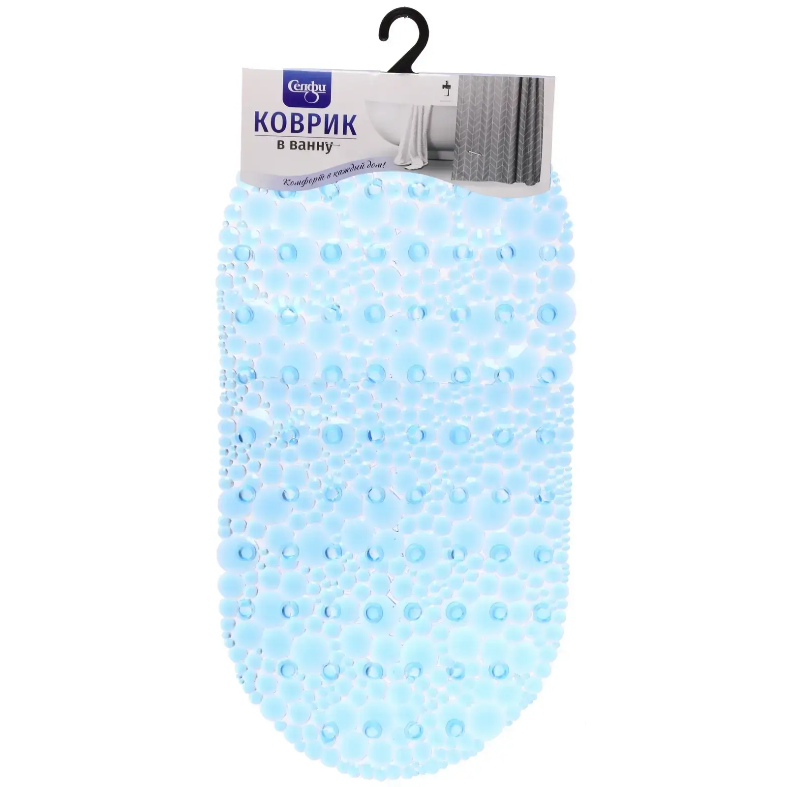 Коврик в ванну "Галька" 64х33см, синий, противоскользящий, быстросохнущий