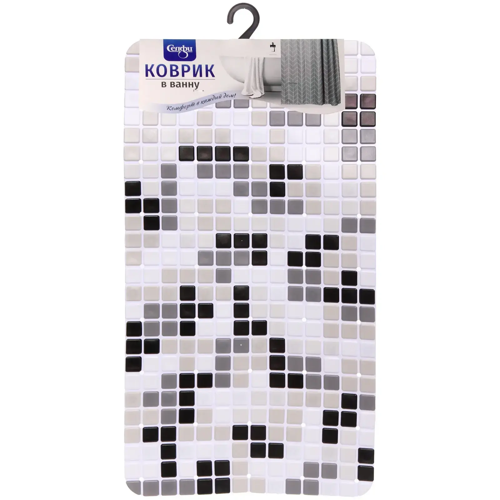 Коврик в ванну "Орегон" 64х34см, серо-черный, противоскользящий, ПВХ
