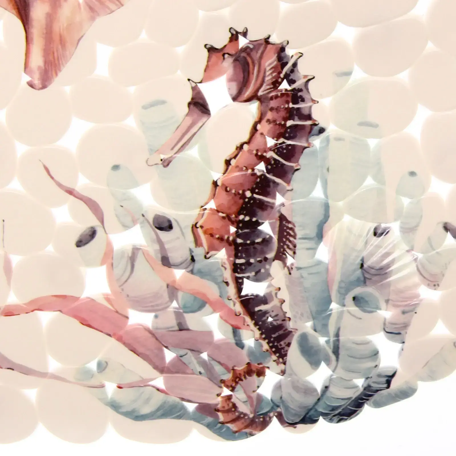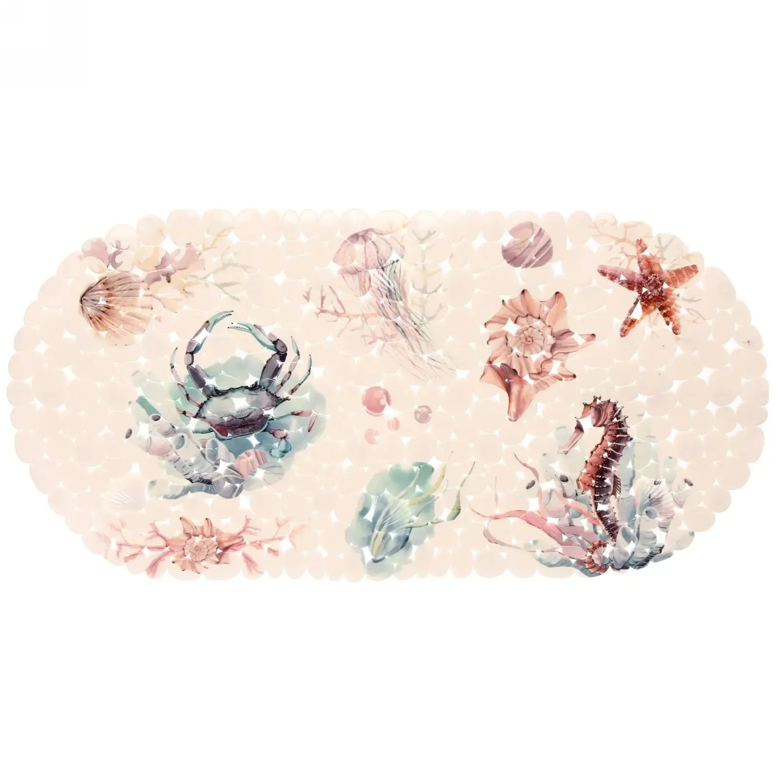 Выбирая коврик «Морские жители», вы получаете не только красивый, но и практичный элемент интерьера. Его морская тематика с изображениями крабов, морских коньков и раковин создаст расслабляющую атмосферу, а пастельные цвета добавят легкости и свежести. Коврик не скользит, что обеспечивает дополнительную безопасность при использовании.