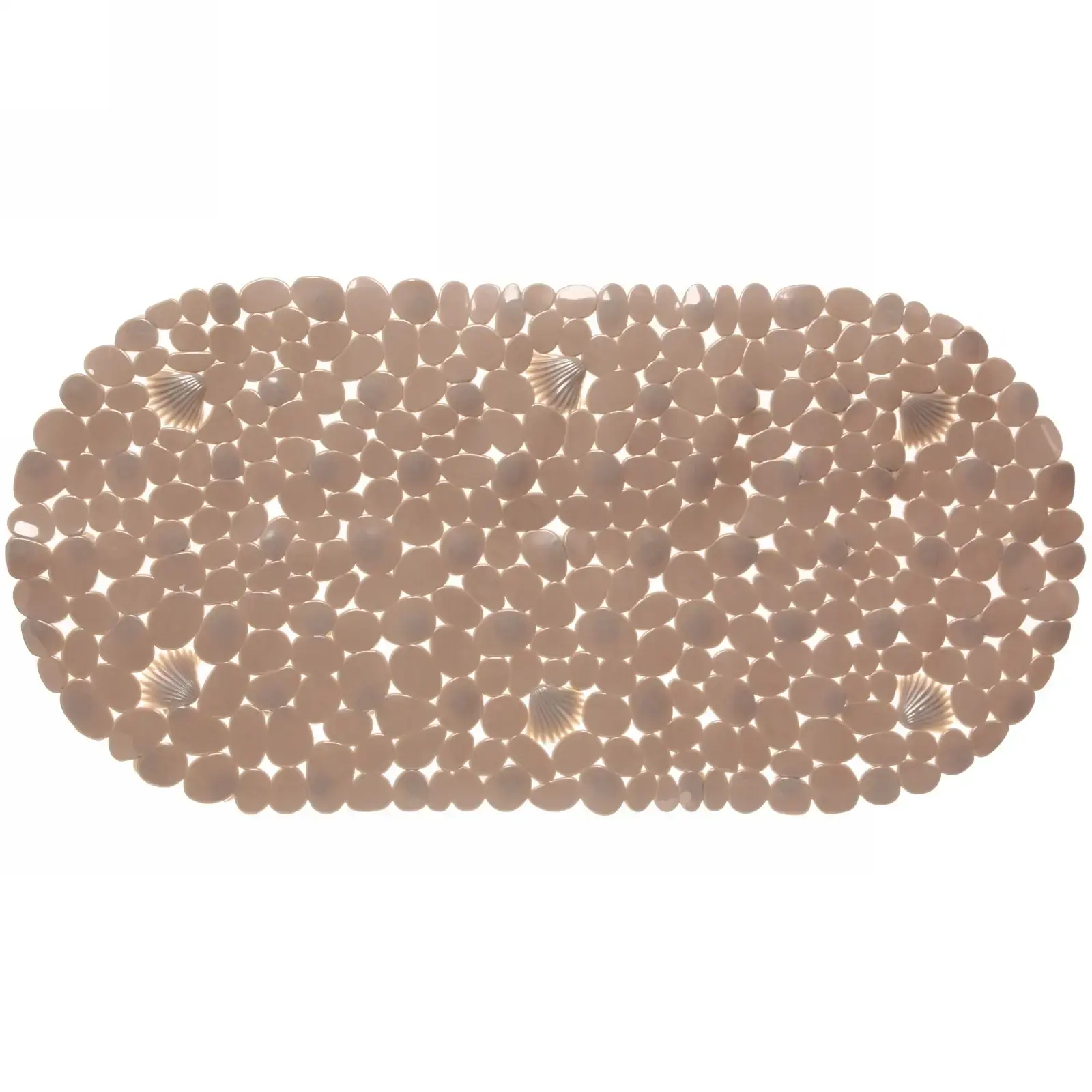 Коврик выполнен из высококачественного ПВХ, что обеспечивает его долговечность и устойчивость к влаге. Его текстура не только приятна на ощупь, но и предотвращает скольжение, что делает его идеальным выбором для ванной комнаты. Размеры коврика 69 см в длину и 35 см в ширину, что позволяет ему занимать достаточно места для комфортного использования.
