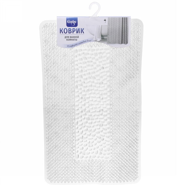 Противоскользящая поверхность коврика разработана специально для предотвращения падений. Мягкий материал ПВХ приятен на ощупь и не скользит по дну ванны. Его размеры 67х40 см идеально подходят для стандартных ванн.
