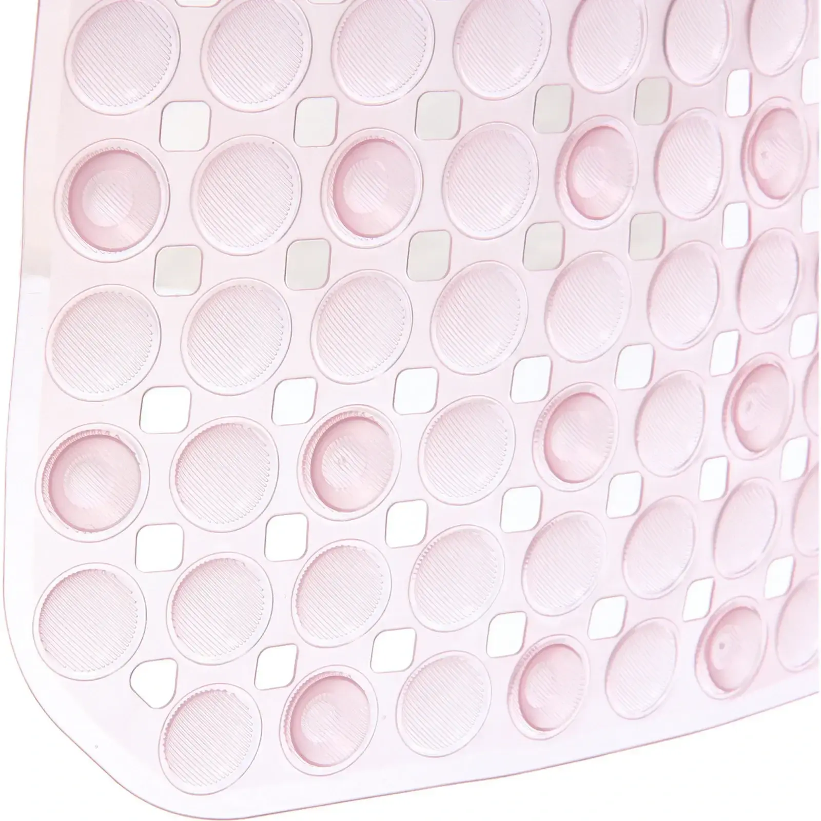 Размер коврика составляет 68х36 см, что делает его подходящим для большинства ванных комнат. Розовый цвет и текстурированная поверхность с множеством выпуклых элементов не только радуют глаз, но и обеспечивают дополнительное сцепление с полом. Коврик легко укладывается и не скользит, что делает его идеальным выбором для всей семьи.