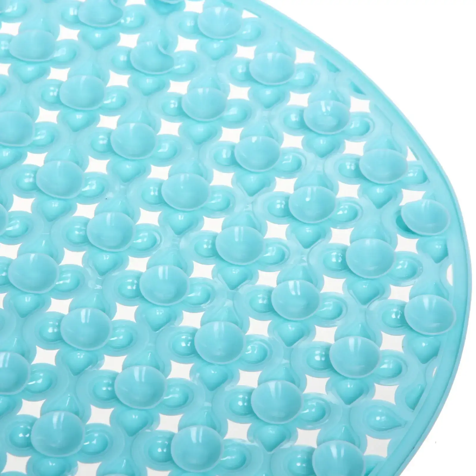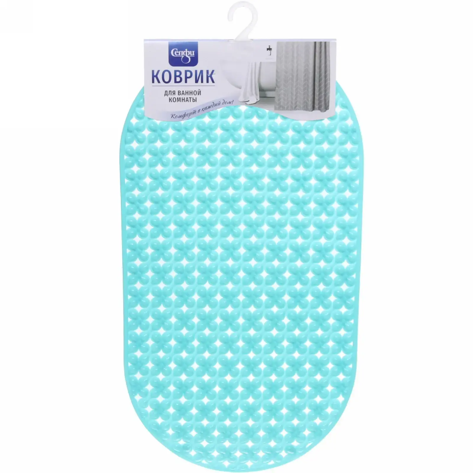 Коврик изготовлен из ПВХ, что делает его водоотталкивающим и легким в уходе. Его рельефная текстура не только эстетична, но и функциональна, обеспечивая дополнительное сцепление с поверхностью. Размеры 68х38 см идеально подходят для большинства ванных комнат, а бирюзовый цвет добавляет яркости и стиля.