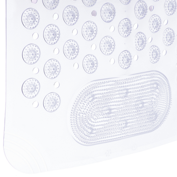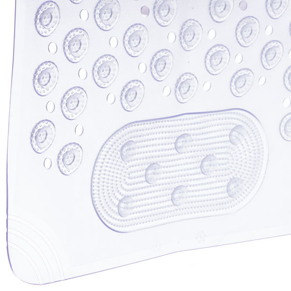 Изготовленный из качественного ПВХ, коврик устойчив к воздействию воды и легко чистится. Его рельефная поверхность с множеством маленьких выпуклостей предотвращает скольжение, что делает его идеальным выбором для ванных комнат. Прозрачный цвет позволяет ему гармонично вписываться в любой интерьер, не нарушая общую эстетику.