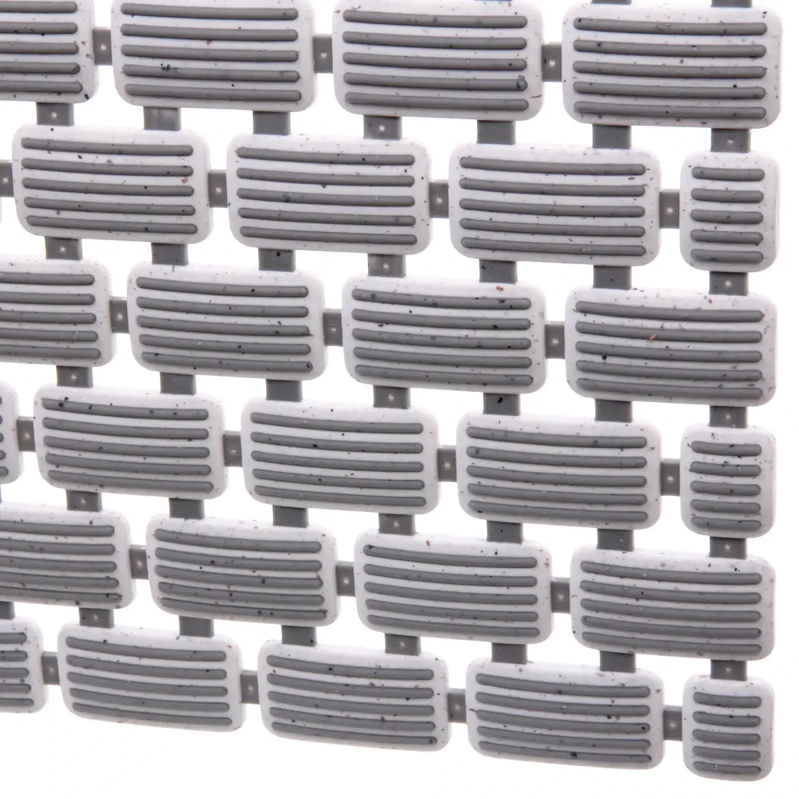 Коврик выполнен из прочного и безопасного материала, который не вызывает аллергии. Его размеры 72х39 см делают его универсальным для большинства ванных комнат. Бело-серый цвет с рифленой текстурой не только красив, но и функционален, обеспечивая надежное сцепление с полом.