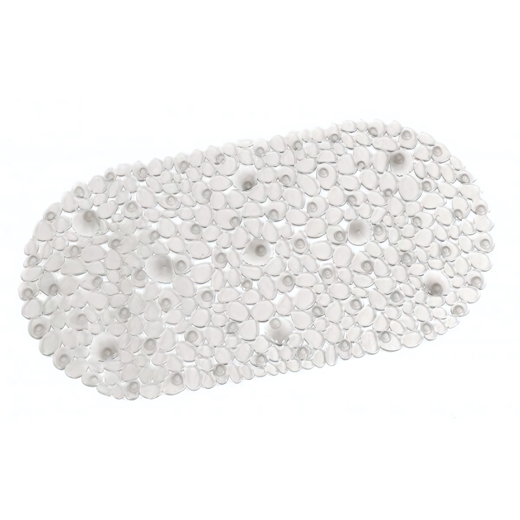 Прозрачный коврик с присосками создан для вашего удобства и защиты от скольжения. Его рельефная поверхность в виде камешков обеспечивает массажный эффект и надежное сцепление даже на мокром полу.