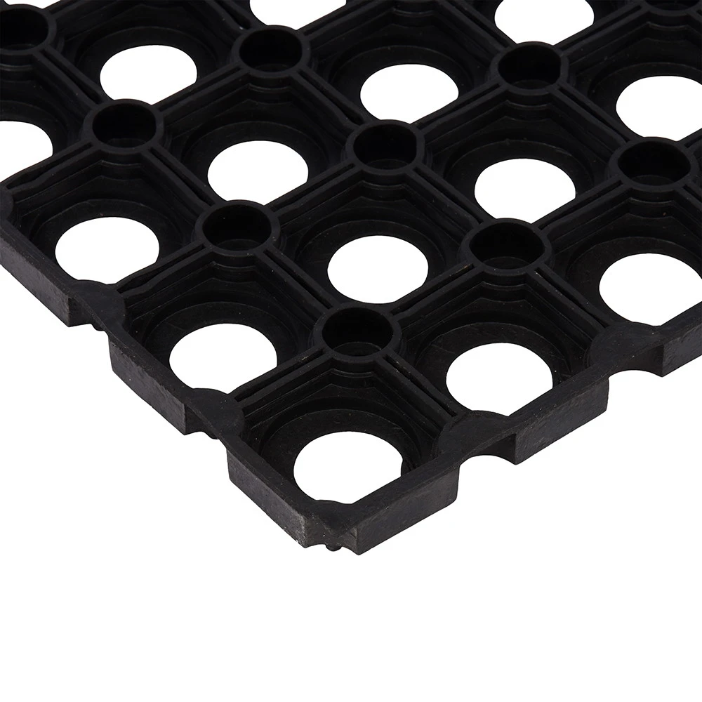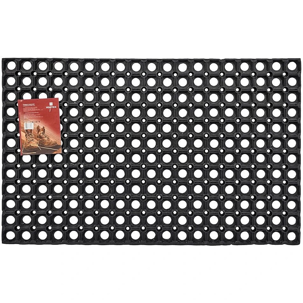 Ячеистая поверхность со сквозными отверстиями собирает загрязнения и влагу, удерживая их внутри коврика. Резиновая основа обеспечивает устойчивость на плитке и других гладких покрытиях, снижая риск скольжения. Коврик удобно размещать у входной двери, в тамбуре, на лестничной площадке или в хозяйственной зоне.