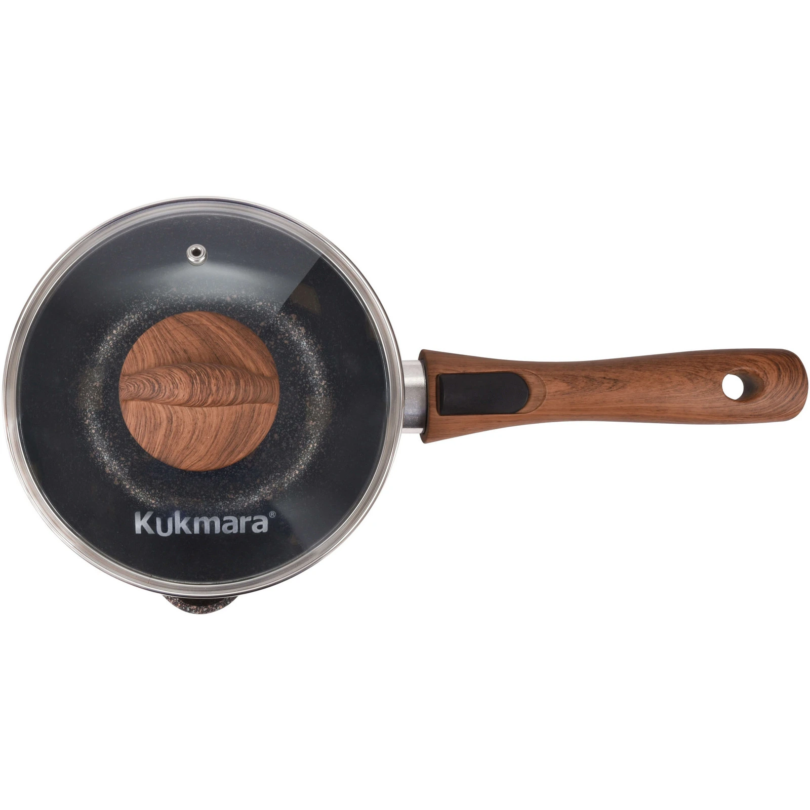Ковш выполнен из литого алюминия и оснащен стеклянной крышкой, что позволяет контролировать процесс приготовления. Термостойкое декоративное покрытие защищает дно и стенки посуды, обеспечивая долговечность и надежность. Размеры ковша делают его идеальным для небольших порций, а стильный дизайн впишется в любой интерьер кухни.