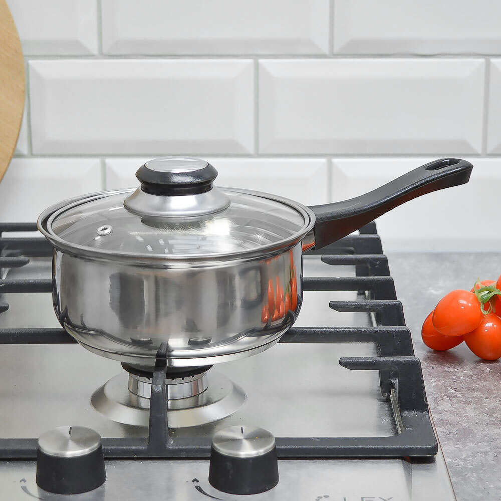 Ковш нержавеющий "Cook" 1л со стеклянной крышкой, для всех плит