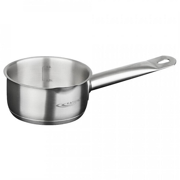 Ковш прекрасно подойдёт как начинающим, так и опытным кулинарам: гладкая внутренняя поверхность и отметки 0.25/0.5 л внутри позволяют контролировать процесс и точно отмерять жидкости. Округлая форма способствует равномерному нагреву, а прочная нержавеющая сталь гарантирует долговечность даже при ежедневном использовании.