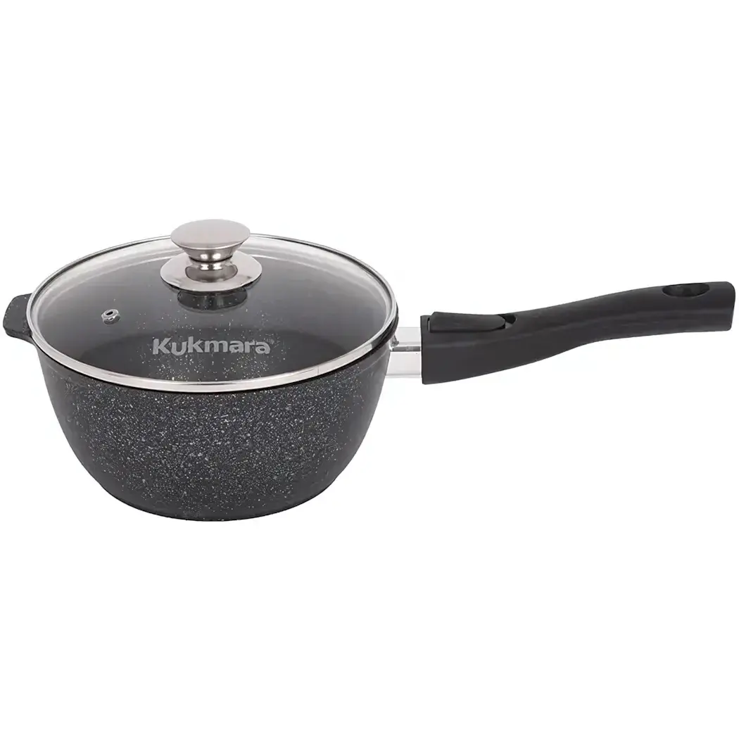 Объем ковша составляет 2,2 литра, что идеально подходит для приготовления блюд на небольшую семью. Его размеры и форма позволяют удобно использовать его на кухне, а стильный черный цвет с мраморным покрытием добавляет элегантности вашему кухонному интерьеру.