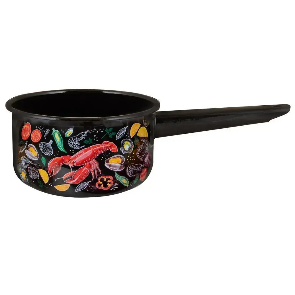 Ковш эмалированный «Лобстер» 1 л, эмалированная сталь, черный цвет, ручка с дизайном морепродуктов