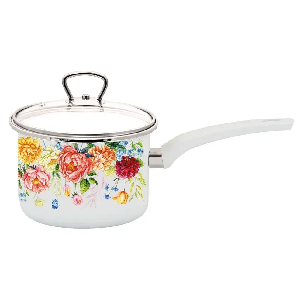 Ковш эмалированный 1.5л 'Peonies' с крышкой, стальной/стекло, цвета в ассортименте
