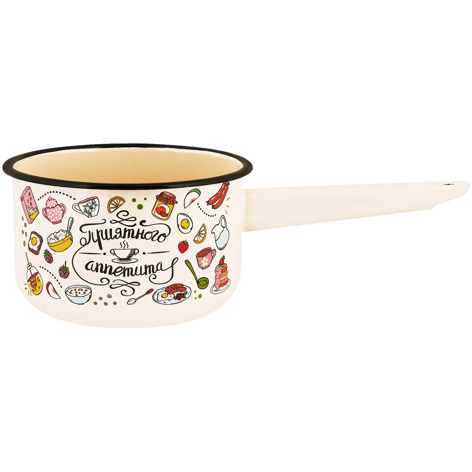 Начните готовить с комфортом! Эмалированный ковш объемом 1,5 литра идеально подходит для приготовления первых блюд, соусов и других кулинарных изысков. Его стильный дизайн с декоративным рисунком «Приятного аппетита» станет украшением любой кухни.