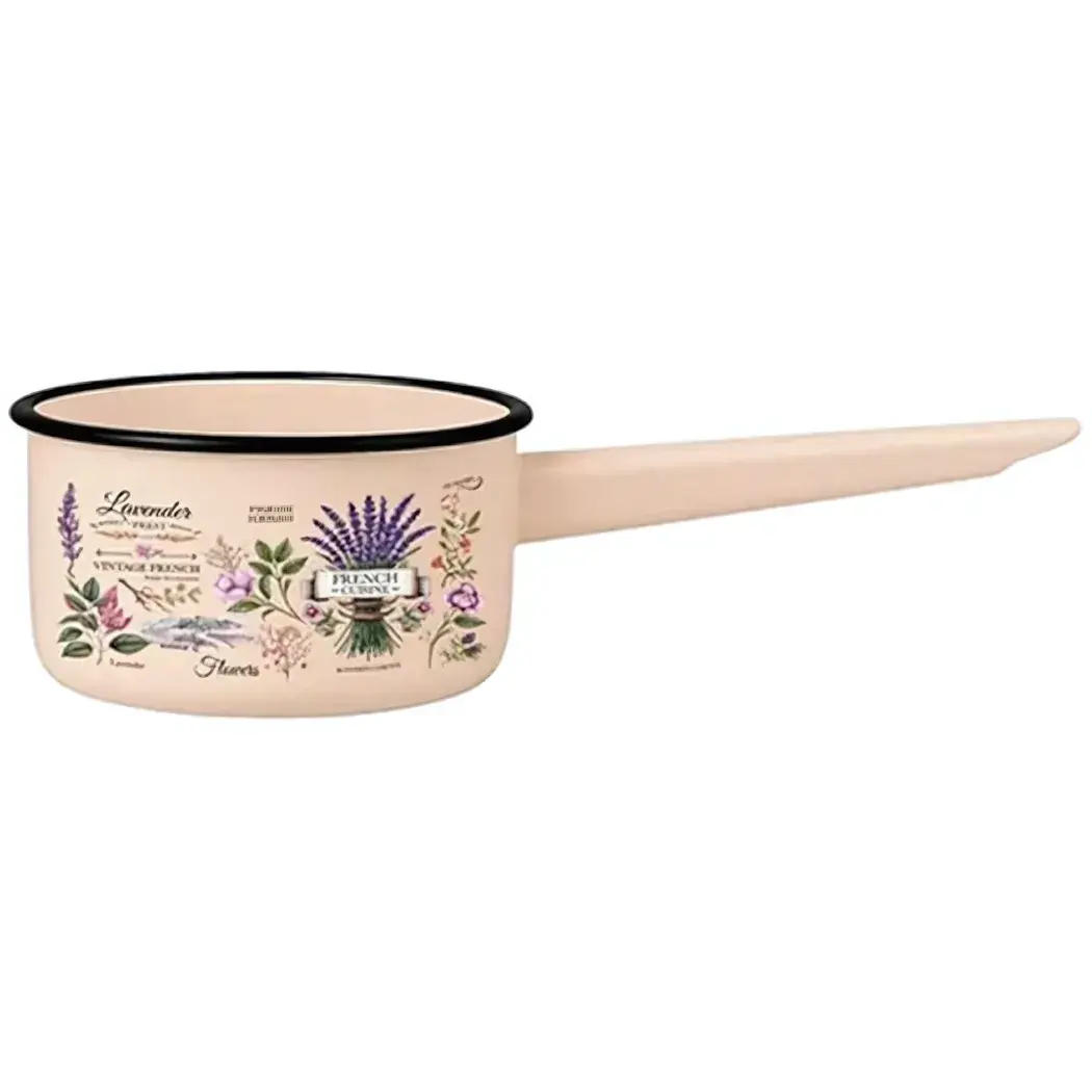 Этот эмалированный ковш объемом 1 литр станет незаменимым помощником на вашей кухне. Благодаря стильному дизайну с изображением лаванды и растительных мотивов, он не только функционален, но и украшает интерьер.