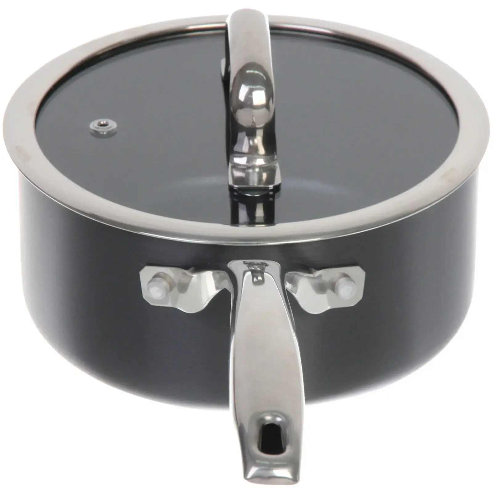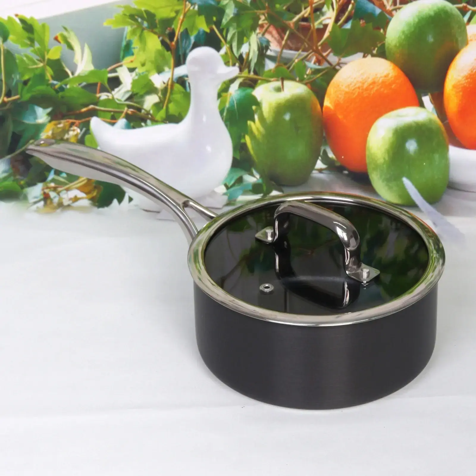 Ковш имеет стандартный размер, что делает его универсальным для различных рецептов. Его черный цвет и матовая поверхность легко вписываются в любой интерьер. Стеклянная крышка с металлическим ободком и ручкой обеспечивает надежное закрытие, а также позволяет контролировать процесс готовки. Ковш «ENERGY» — это не только функциональность, но и стиль, который вы оцените!