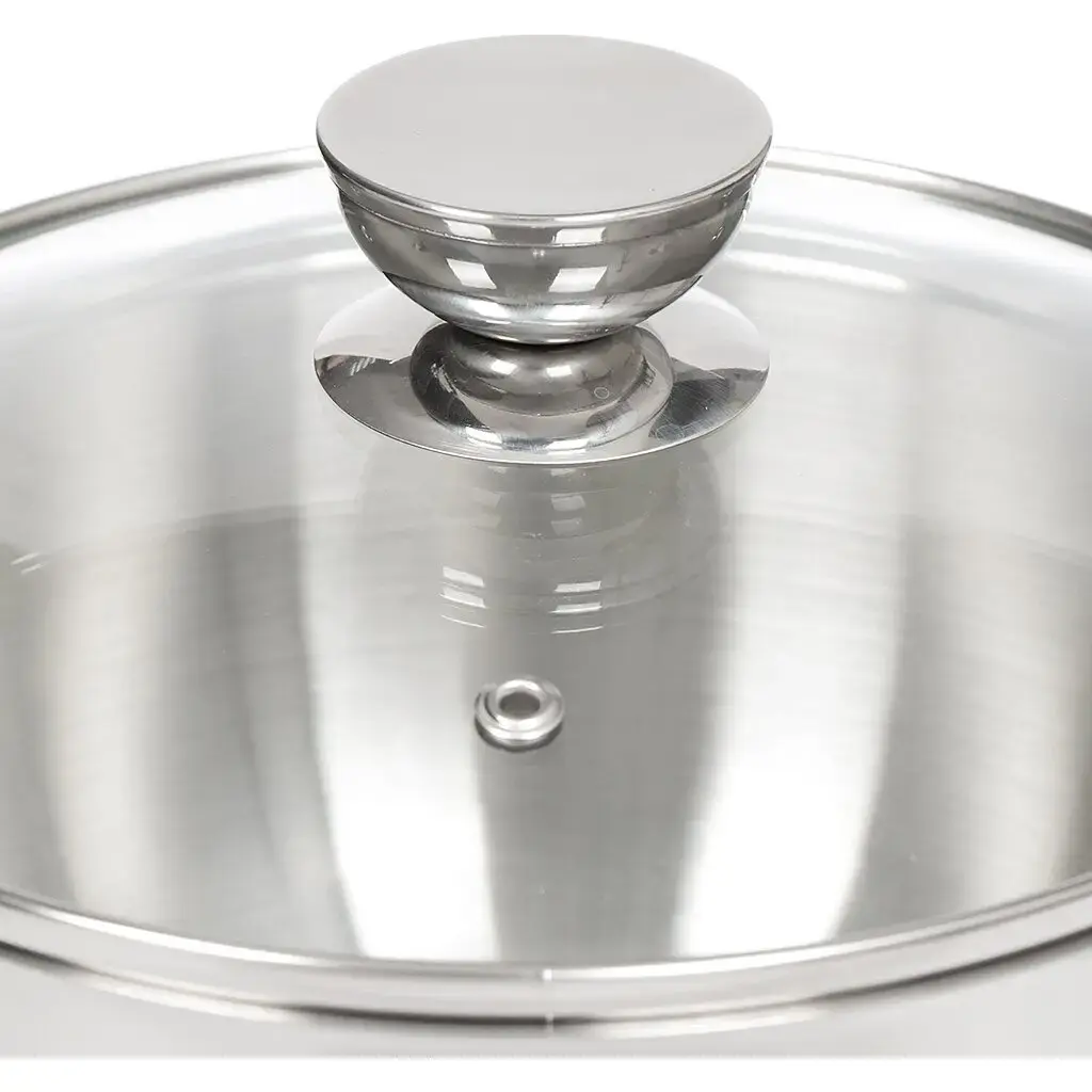 - Многослойное дно из нержавеющей стали равномерно распределяет тепло