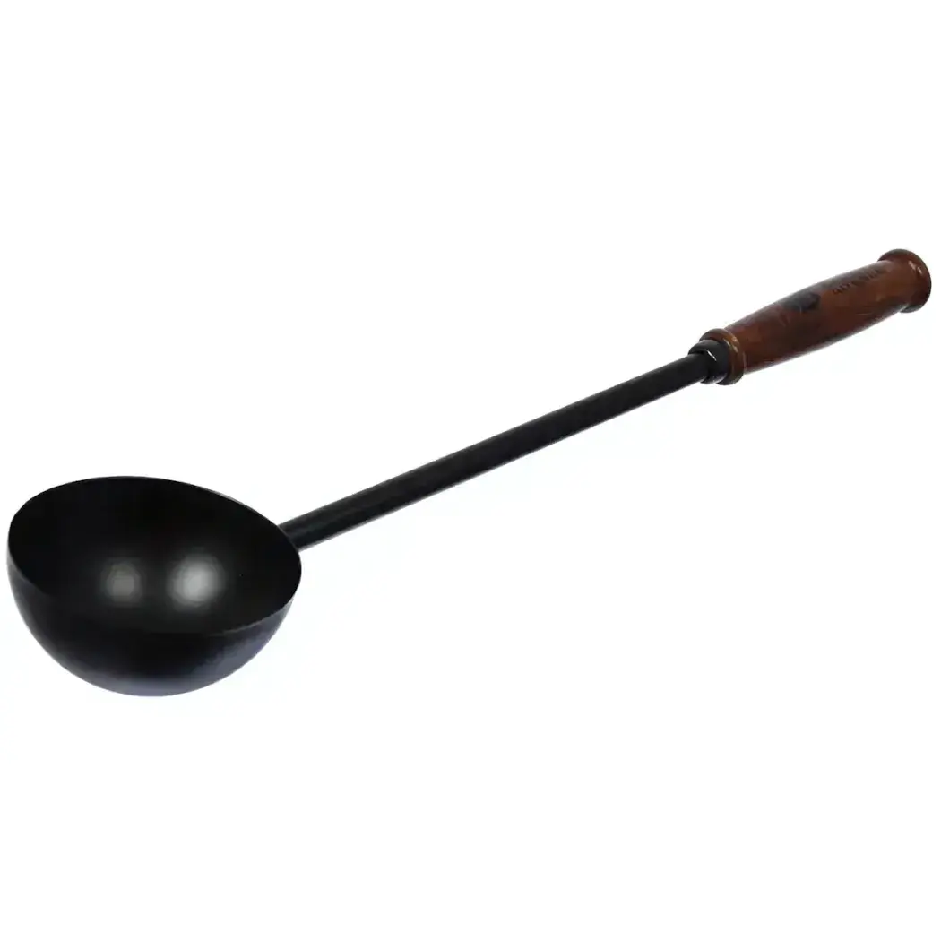 Черный ковш из нержавеющей стали объемом 0,2 литра с удобной деревянной ручкой станет вашим надежным спутником в бане. Длина 45 см позволяет безопасно добавлять воду на раскаленные камни.