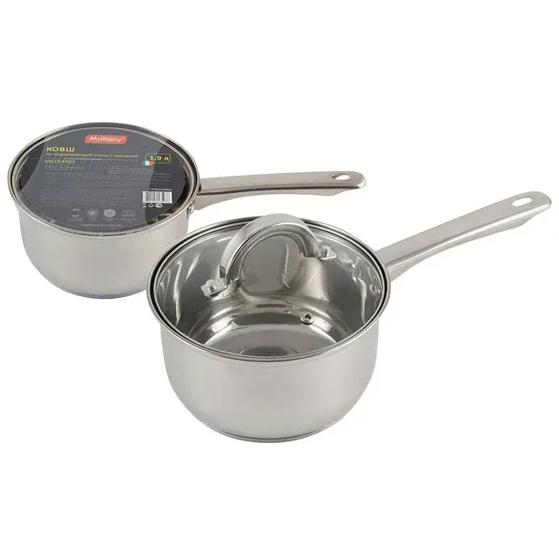 Ковш «Mediano» 1,9 л с крышкой, нерж. сталь, капсульное дно, ручка из нерж. стали